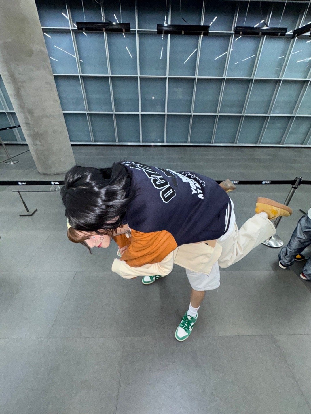 张天爱跟素人合影,胯真的好宽,大宅院似的