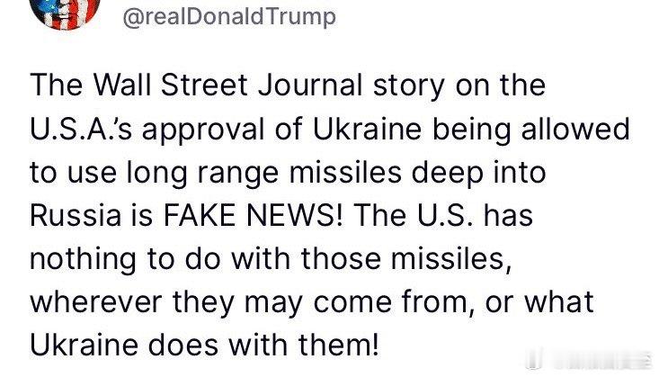 Trump:假消息!我没批准!美国和这些导弹没关系,不知道哪来的、乌克兰怎么用的