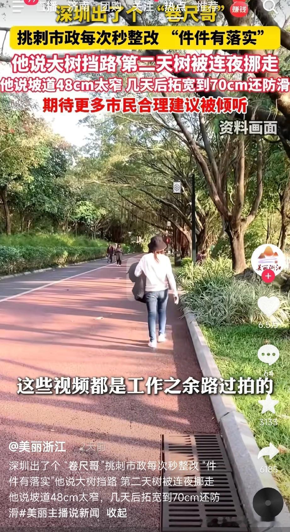 深圳“卷尺哥”火了! 最近深圳街头出现一位“民间测评官”——卷尺哥! 他带着一把卷尺,专挑城市细节“找茬”,结果让人惊呆: 大树挡路人行道? 头天说完,第二天直接连夜挪走! 坡道48厘米太窄?几天后拓宽到70厘米,还贴心加了防滑条! 更绝的是,市政部门不仅不恼,反而把他的“挑刺”当成宝贝,件件秒回、事事落实! 网友炸锅:“这哪是卷尺哥,分明是城市升级加速器!”“建议全国抄作业!” 要我说,深圳这波操作赢麻了: ✅ 不搞形式主义,市民金点子直接变施工图 ✅ 不怕群众挑刺,反而把“挑刺”当“拔刺” ✅ 民生无小事,斑马线宽几厘米都是民心工程 其实城市治理就该这样——让老百姓的呼声听得到回响,让卷尺量出的每厘米都透着城市的温度! 期待更多城市打开大门听建议,咱老百姓的智慧,可不止一把卷尺的距离! (文章素材来自美丽浙江,侵删)