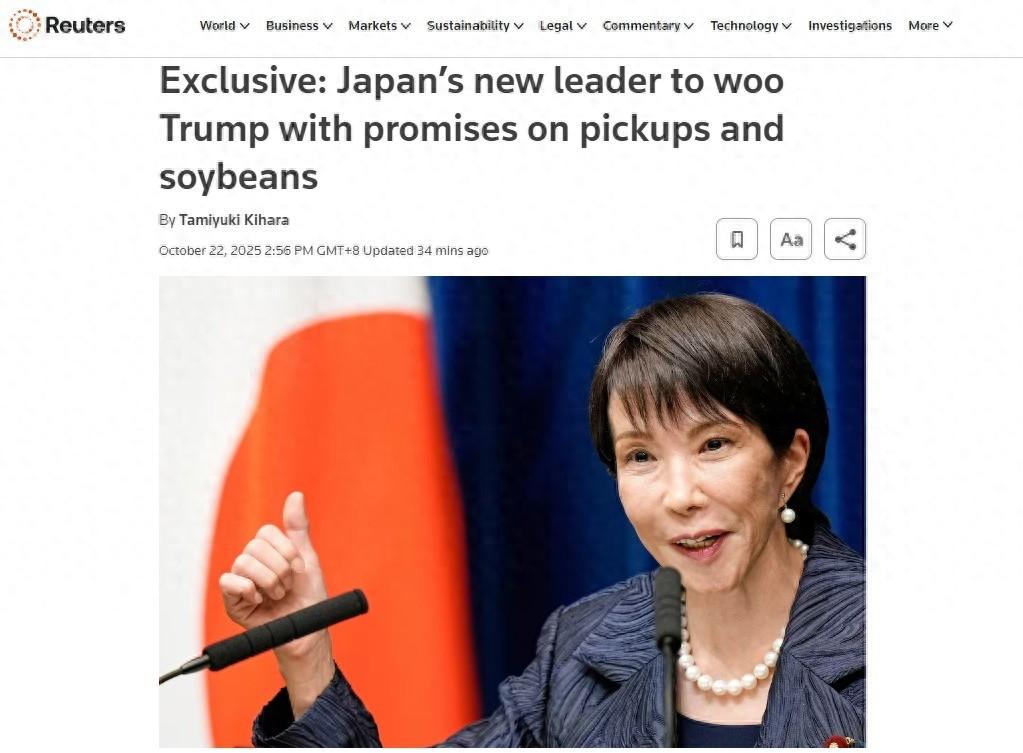 上台第二天,高市早苗就向特朗普表忠心,中国不买的东西,日本出钱买! 高市早苗是21日上台的,在第二天,消息人士就向媒体放风,表示新一届日本政府正开始敲定一项购买计划,可能会在下周的美日接触中提交给特朗普。 日本要购买什么东西呢?美国的皮卡、大豆和天然气。这三样东西,没一样是自己真的需要的。中国不买,美国就找人接盘,日本这时候站出来,怎么看都像是主动替美国解决难题。 而高市早苗刚上台就表态支持,也确实引起了不少舆论关注。先说说背景。中国近年来在全球贸易格局中越来越有话语权,尤其在农产品和能源采购方面,逐渐减少了对美国的依赖。 比如大豆,中国已经在巴西、阿根廷等南美国家找到了稳定的进口渠道。美国的大豆卖不动,就成了一个问题。 再比如天然气,中国在加强与中亚、俄罗斯的能源合作,也在稳步推进国内可再生能源转型,对美国液化天然气的需求自然没那么迫切了。 皮卡更不用说,日本自己造车技术全球领先,出口量也一直居高不下,真没必要从美国进口一堆大排量车回来占地方。 但这三样东西偏偏出现在日本的采购意向中,那就不能简单看成是市场行为了。其实日本政府这一套操作以前也不是没干过。 早在安倍时代,日本就为了拉拢特朗普,承诺增加从美国进口玉米,理由是“虫害影响国内产量”,但那时日本的农民并不买账。 这次的采购风声刚出,外界立马联想到是不是又要重演一遍“政治采购”的老套路。毕竟特朗普眼看又要在大选中出山了,日本这边提前打感情牌,也不算太意外。 只是这次选在高市早苗上台第二天就放出风声,节奏未免有点急了。高市早苗在日本政坛一直以鹰派形象著称,对华态度强硬,对美国则一贯亲近。 她在担任总务大臣时期,就多次公开表示要加强与美国的战略合作,而这次一上台就准备出手采购美国产品,很难不让人联想到她的政治倾向。 尤其是在当前日本经济承压、财政紧张的背景下,拿出一笔不小的预算去买并不急需的美国产品,普通日本民众的反应也不会太正面。 这次采购传闻如果成真,日本买下的不仅仅是大豆、皮卡和天然气,更是买下一份“政治保险”。但问题是,这种保险真能保多久? 特朗普能否重新上台还是未知数,就算他重返白宫,美国的政策也未必会因此对日本更友好。反而可能因为日本“太听话”,被看成可以随意使唤的角色,反而丧失了博弈空间。 而另一方面,如果日本继续在对华问题上采取对抗姿态,不仅会影响区域稳定,也可能失去与全球第二大经济体的深度合作机会。 所以说,这次“日本买美国三件套”的新闻,不只是一个经济议题,它更像是一场外交投名状。高市早苗刚上任就急着亮明立场,或许也是想给自己未来的政治路径铺路。 但这条路走下去,日本是否还能保持平衡外交,是否还能真正体现“印太战略”中的独立角色,恐怕还得打个问号。眼下这笔买卖看似简单,背后的账恐怕没那么好算。 参考资料:全球媒体聚焦|外媒:大豆与皮卡 日本新首相用什么向美国示好? 2025-10-22 19:06·央视新闻