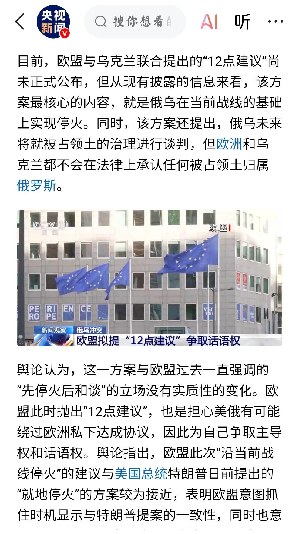 美欧:调停俄乌冲突 个人观点:布鲁塞尔峰会(注:特朗普参会)和英国的自由联盟(支持乌克兰)将是美欧调停俄乌冲突的两个沟通节点。 实质是:特朗普独立调停,俄乌冲突的打算破产了。欧洲争夺话语权其实就是争夺利益,因为俄乌冲突已经造成欧洲各国入不敷出,欧洲各国政府已经破产,社会不稳,经济动荡,福利不得不暂停,已经酝酿经济危机。 个人认为:俄罗斯绝对不会是案板上的肉,任人宰割,任意制裁。 俄乌冲突