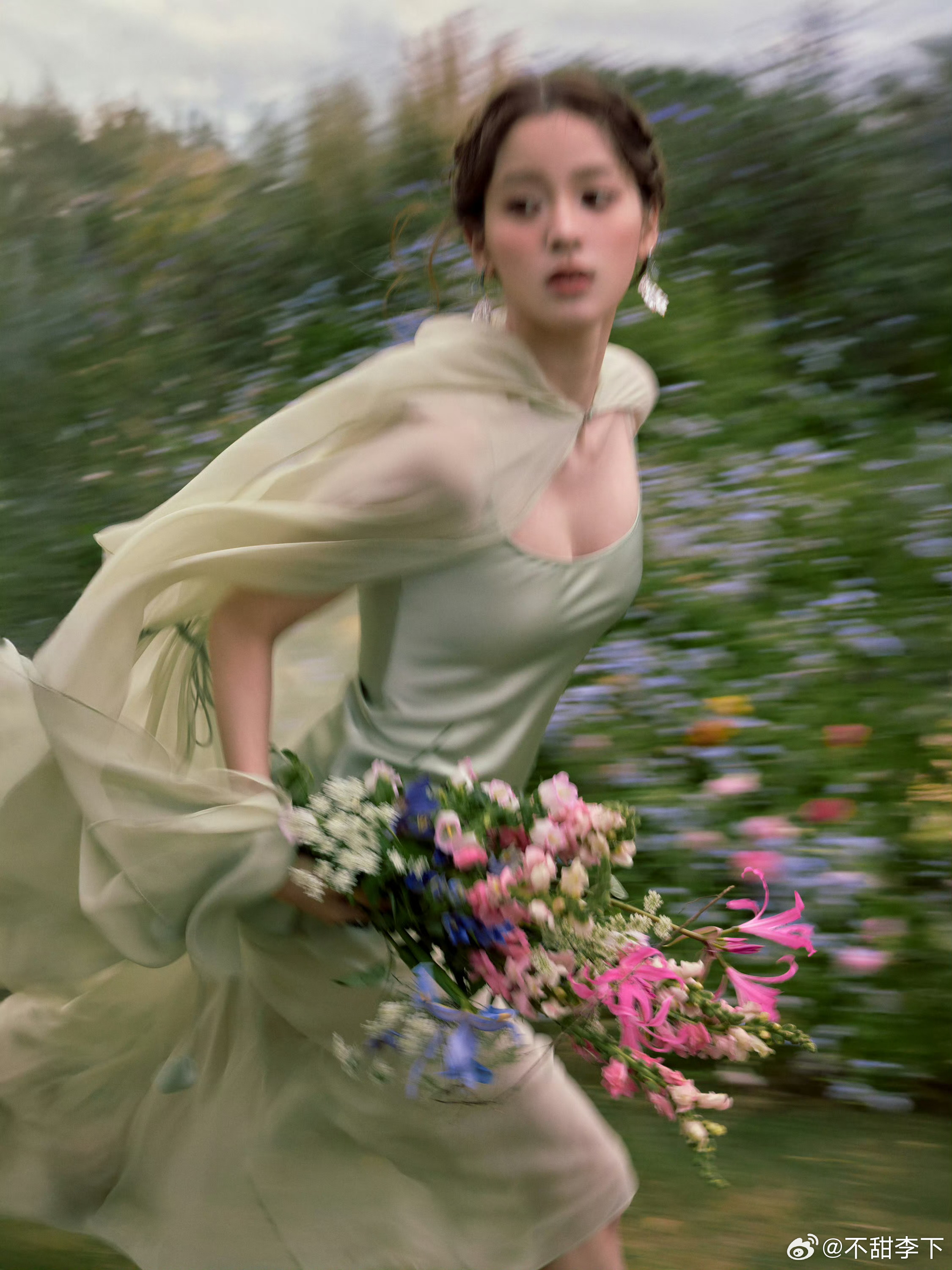 刘亦菲呆了。杨幂也惊住了,戚薇为了搏出彩,竟然弄了件一百斤的真花衣服穿身