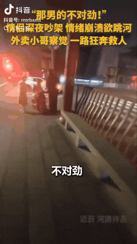 河南,一对情侣深夜时吵架,男生突然情绪崩溃欲跳河,女生跟着躺马路中间,还好被4名外卖小哥及时察觉,他们一路狂奔合力救人,最终两人都获救了。网友:“河南小伙地道!不是一家人不进一家门!” 信息来源:人民日报 10月20日凌晨12点多,许昌护城河边,李师傅和另外三位小哥正盯着手机等单。 忽然,河对岸传来喊吵声。 俩年轻人刚开始还在嗡嗡地吵,谁知道不到三分钟,那男的火气上头,竟然脱了上衣、脱了鞋,半个身子都探到栏杆外,冲着河里看。 李师傅眼睛一亮:“不对劲啊!”四个人立马扔下电瓶车,冲过去,一把揪住男生胳膊,把他从栏杆上拽回来,按在地上好几秒才稳住。 可偏偏这时候,女生也崩溃了,直接在马路中间躺下,哭得撕心裂肺。 两个小哥赶紧把电动车横在身前,开双闪挡车灯,又和路人一道,把女生往路边挪,护着她别被车撞。 大家正忙着安抚,男生又抄近路跑向河边,想第二次跳下去。 这回四人加上3位好心路人,一路追,一边又喊“这是弄啥嘞!你弄啥嘞!”好不容易,又把他给逮住了。 事情告一段落,众人赶紧拨打110,等来民警,把俩人带回派出所,给他们倒水、喂糖,耐心安抚。 要不是这群热心人,真不知道会出啥事。 事后,外卖平台给他们颁了“先锋骑手”荣誉,还发了4000元奖金;许昌市市场监管局的工作人员还亲自送花致敬。 袁靖昂说,当时还有3位路人帮忙,他们也想找到人,一起平分奖励。 另一位小哥谦虚地讲:“救人时拼命,领奖时谦让,我们只是做了应该做的事。” 网友看了纷纷点赞:“河南小伙地道!不是一家人不进一家门!” 也有人说:“冲动是魔鬼,管好自个儿的情绪,保住命才能好好过日子。” 这事告诉们:如果遇到有人想轻生,赶紧阻止,能保住一条命,才有后面的好日子。 同时,这事也提醒大家:做事情不要冲动,有什么事情好好商量,好好沟通,不要走极端就轻生,生命只有一次,好好珍惜生命,就算遇到天大的事情,只要人在,事情也会慢慢解决。
