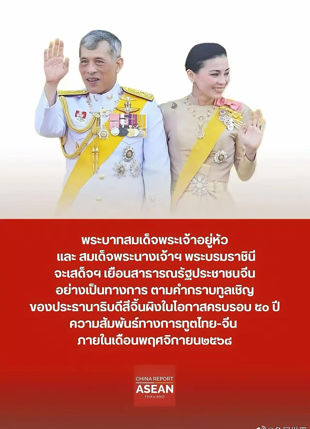 泰王首次访华!200多年头一遭,这信号太不一般 泰国宫务处一官宣,我立马惊了:玛哈国王和素提达王后11月要访华,这可是曼谷王朝两百多年来,在位国王第一次正式来中国! 这哪是普通的访问啊,明年就是中泰建交50周年,现在来这一趟,简直是给两国交情“上了层金”。之前王后还带队和中国打冰球友谊赛,“中泰一家亲”可不是说说而已。 国王亲自出马,说明双方都把这份关系看得格外重。不只是礼仪上的重视,更是想把经贸、人文这些合作再推一把。毕竟两国关系好,老百姓日子也能跟着沾光。 你觉得这次访问,会给中泰带来哪些新惊喜?
