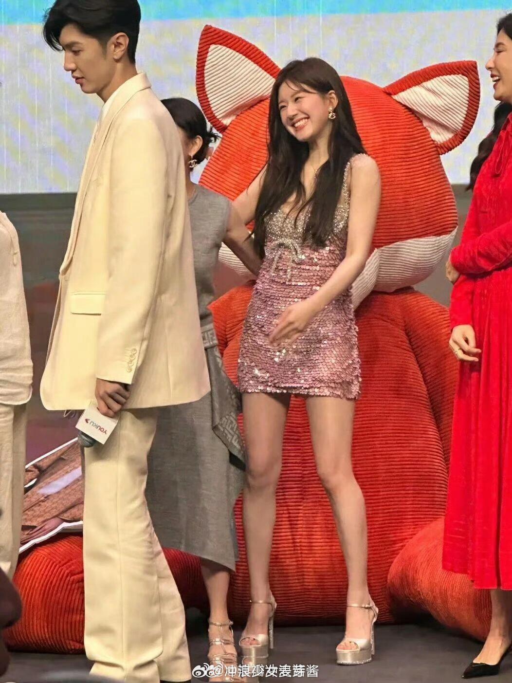 张天爱跟素人合影,胯真的好宽,大宅院似的