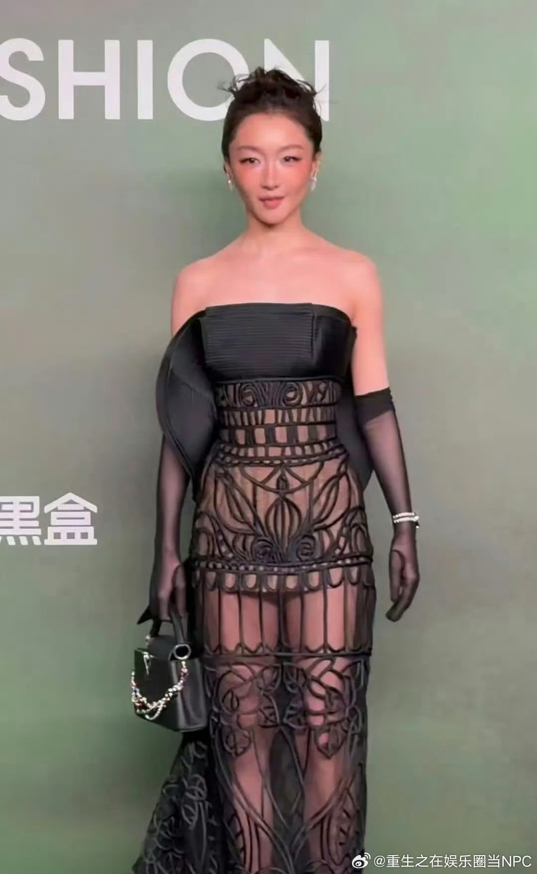 张天爱跟素人合影,胯真的好宽,大宅院似的