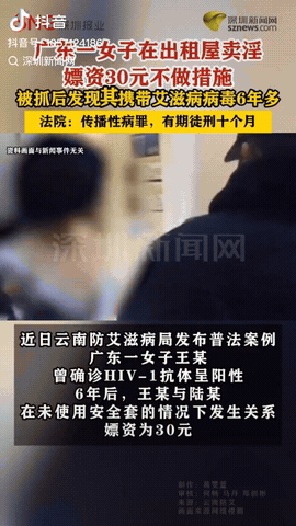 广东东莞,一男子花30元找一女子进行卖淫服务,但是没有做安全措施,没想到,两人被前来巡查的民警逮了个正着,更让男子崩溃的是,对方竟已患艾滋病长达6年,最终男子悲剧了。 信息来源:深圳新闻网 事情发生在10月21日的晚上,陆某听人介绍认识了王某,两人在小巷里找到她租住的屋子。 30块钱到手后,两人没戴安全套就开始。 可偏偏这时,巡逻的警察敲门进来,把俩人当场抓住。 想都没想,陆某被直接带到派出所,心里“咯噔”一下:这钱要是交给别人,倒还算了,可自己跟个带病的人……他腿都软了。 警察把王某送到东莞疾控中心一检测,结果HIV-1抗体阳性,而且她6年前就确诊艾滋病了。 也就是说,陆某这次可真是顶着巨大风险在外面乱玩。 他现在得至少等三个月的“窗口期”过去,还要反复去医院复查,才能确认自己到底有没有中招。 这心理压力,简直比考试不及格还难受。 法律也不留情。 根据治安管理处罚法,陆某因嫖娼被拘留10到15天,还要交最高5000元罚款。 至于王某,她明知道自己带病还卖淫,法院以“传播性病罪”给她判了10个月徒刑,又罚了2000块。 判决一出来,她没有上诉,直接生效。 更严重的是,法律明确说,如果她把病传染给人,还可能要被按故意伤害罪来处理,最高能判重伤。 这案子在东莞还挺有标志性——这是这里头一宗因为艾滋病卖淫被判刑的案例。 想想也可怕,她6年里要是接了更多人,那后果就更严重了。 可见,蝇头小利背后隐藏的风险,真不是开玩笑的。 这30块钱,陆某花得既花时间又花钱,还得受罚,还得跑医院折腾几个月;王某呢,不光坐了牢,还背上了牢狱之灾和犯罪记录。 廉价的性交易,看似便宜,其实可能换来终身隐患。 通过这事,给大家提个醒:不要贪图便宜、图刺激,最后吃亏的往往是自己,我们要遵纪守法,尊重自己也尊重别人,毕竟安全第一。 身体健康最重要,不要去做伤害身体的事情,否则得了脏病,有可能最后性命不保。
