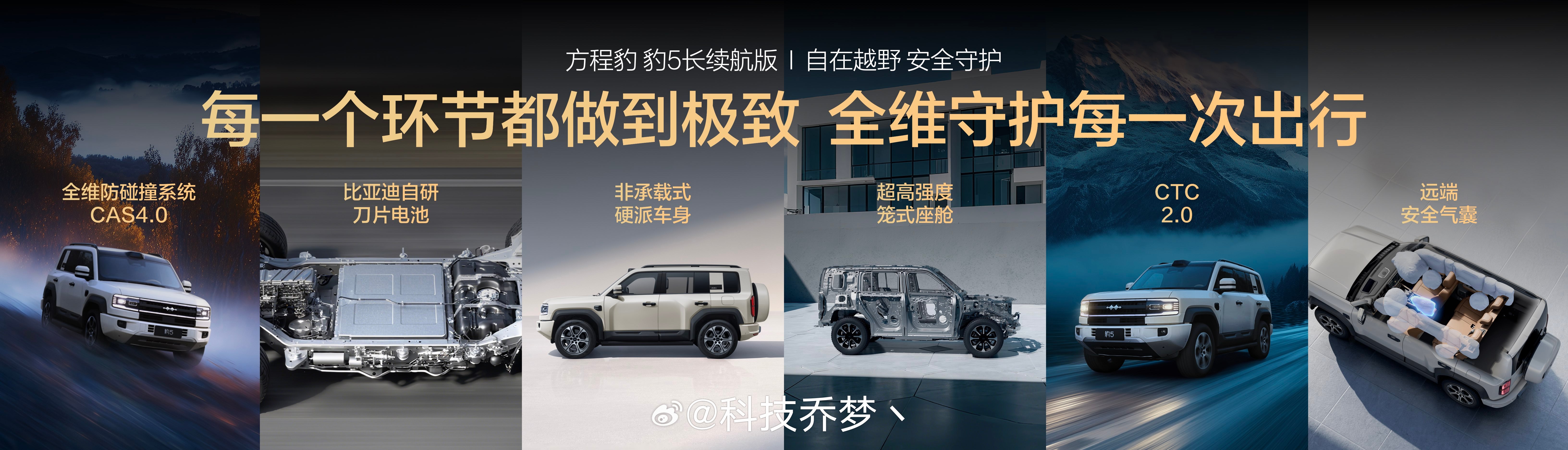除此之外,豹5乾崑版及豹8全系将升级华为乾崑智驾ADS 4、搭载钛7同款比亚迪智慧生态、CTC 底盘电池一体化技术升级到2.0等等,一系列的配置升级让豹5长续航版和豹8大五座版在续航、安全、舒适、操控等全方位得到了进化,给消费者带来更好的出行体验。