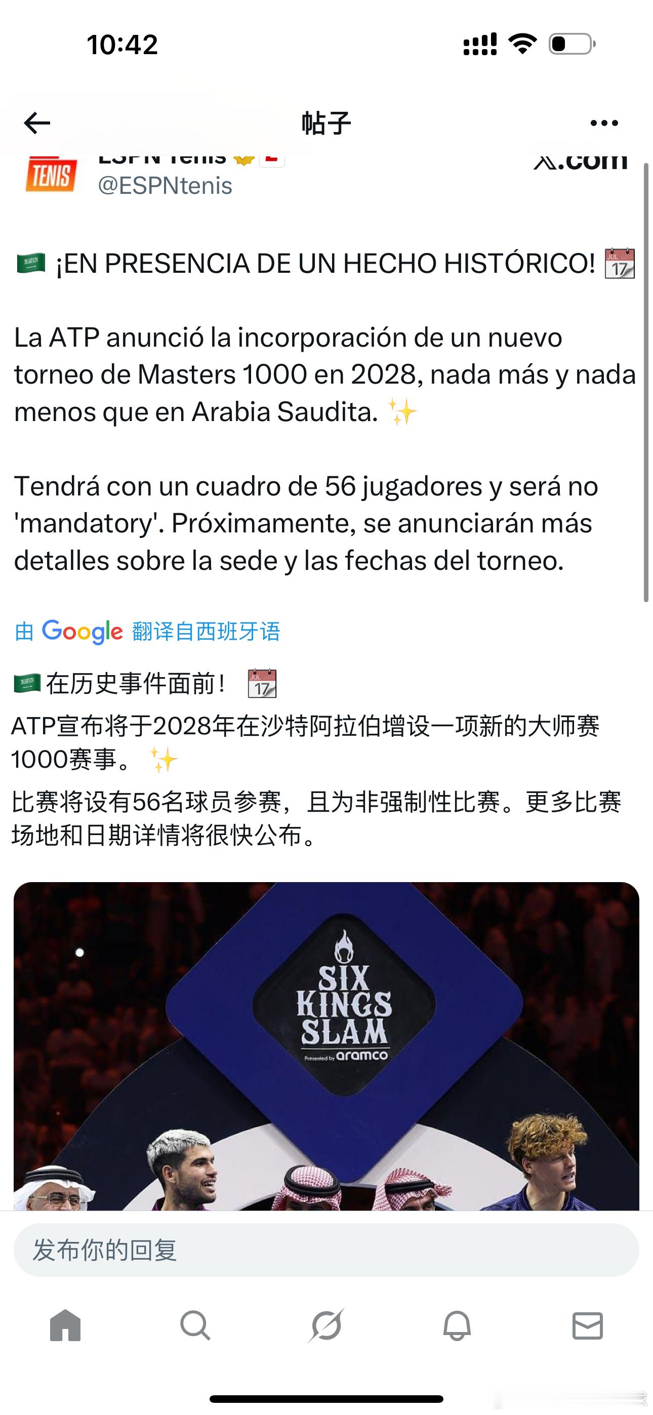 网球talking大会ATP[超话]沙特将举办第十站ATP大师赛
