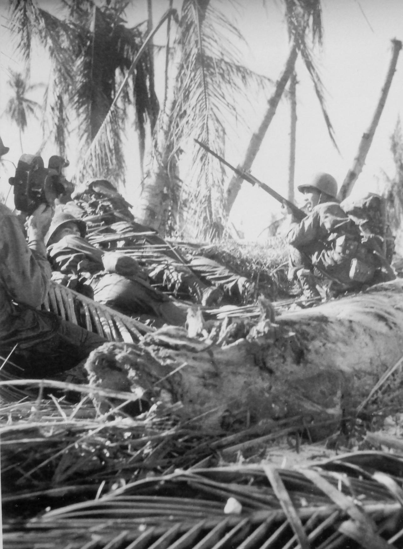 1944年5月18日,新几内亚,瓦克德岛。美军第163步兵团士兵正在作战,一名战地摄影师使用“艾莫”71-Q型电影摄影机进行了拍摄。 瓦克德岛在新几内亚西部约200公里,是一个战略支点,控制着盟军向比亚克岛推进的航线。 艾莫71-Q型电影摄影机是美国贝尔浩公司生产的35毫米手持电影摄像机,配备发条驱动装置和400英尺胶片盒,是二战中盟军战地记者的标准装备。 [呲牙] 那么,现在问题来了——请问:画面中那名士兵手中的是什么型号的步枪(参见图3~4)?
