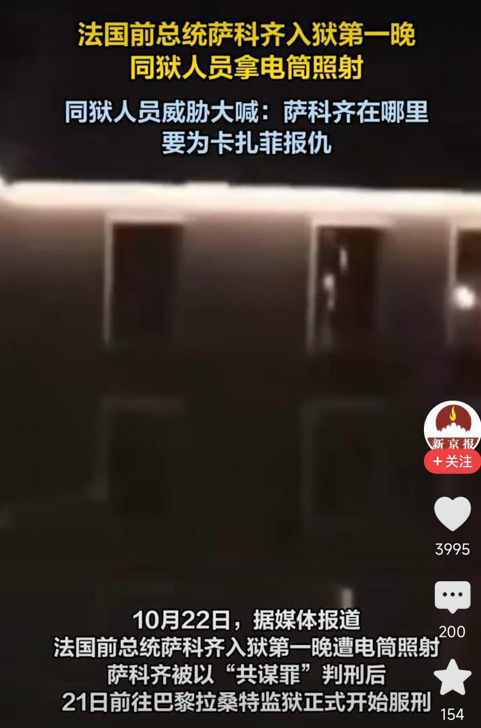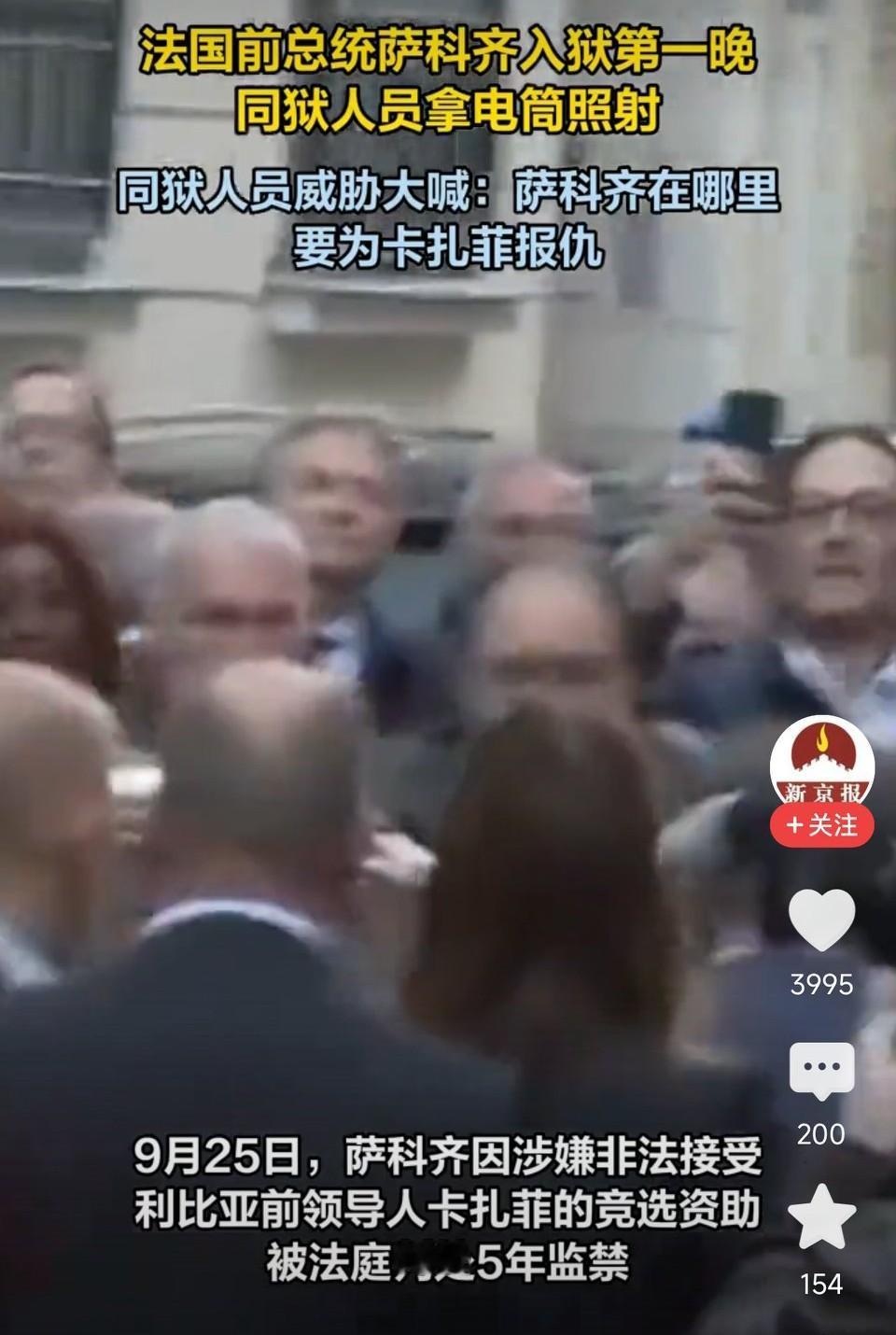 法国前总统萨科齐入狱第一晚,同狱人员拿电筒照射,要为卡扎菲复仇! 网友表示: 你