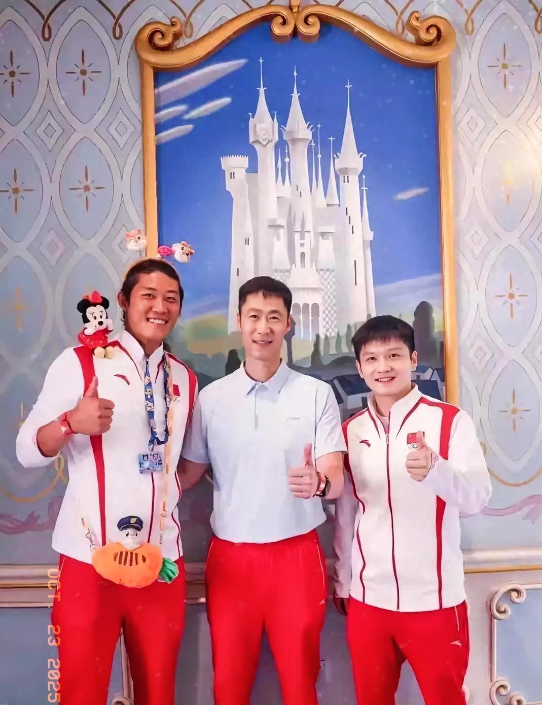 王励勤、樊振东和张之臻(网球运动员),在一起的友情合影。