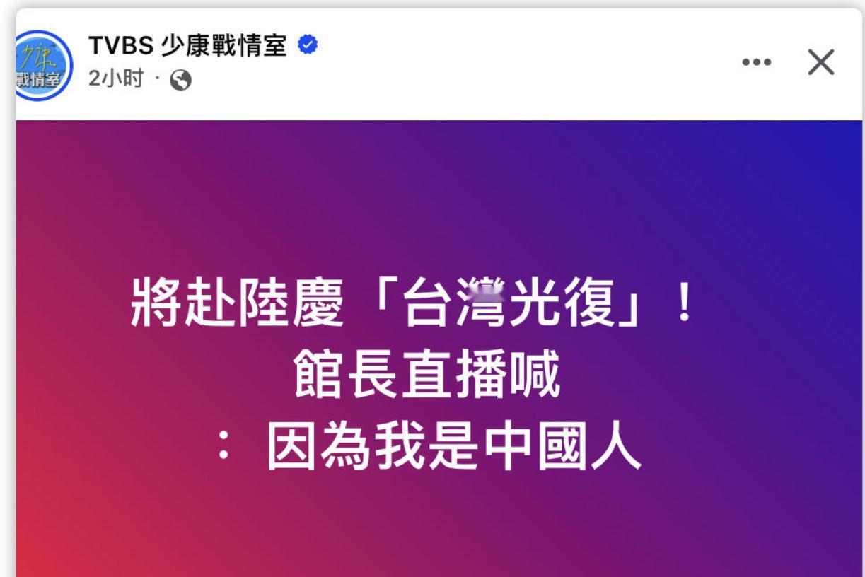 台湾馆长直播喊:“‘因为我是中国人’,所以我将赴大陆庆祝‘台湾光复’!”