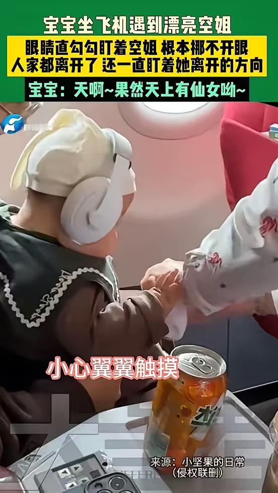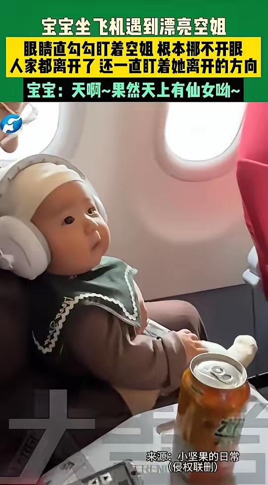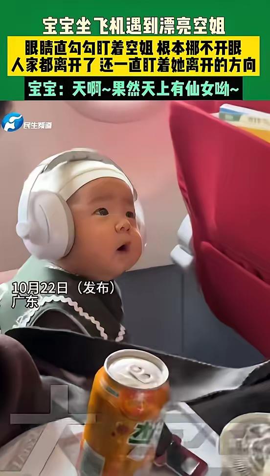 近日,广东一位网友带着自己两岁的宝宝坐飞机,在飞机上遇到了一位很漂亮的空姐,没想到的是,宝宝在看到空姐后的反应让人笑不活了。 视频中,当美女空姐过来的时候,宝宝的眼神都直了,探出头来仔细看着空姐,好像要把空姐的形象印在脑子里似得。 有网友表示:想起我好大儿小时候也是看见漂亮年轻的小姐姐也是跟人家互动可欢了,换了个奶奶级的立马把小脑袋趴下生怕别人过来抱他。 小宝宝一般看的都是眼缘,看着顺眼了,所以他就多看几下,根本都没有别的想法。他所看到的人肯定是长的面善。 宝宝这表现太可爱啦!想必是上辈子就认识这位空姐,今生在飞机上又相逢,这缘分真是妙啊。 空姐看起来是-一份光鲜亮丽的工作,其实背后隐藏着不为人知的辛苦和辛酸。高强度晨昏颠倒的生活,其实就是拿命在赌呀! 对此大家怎么看呢