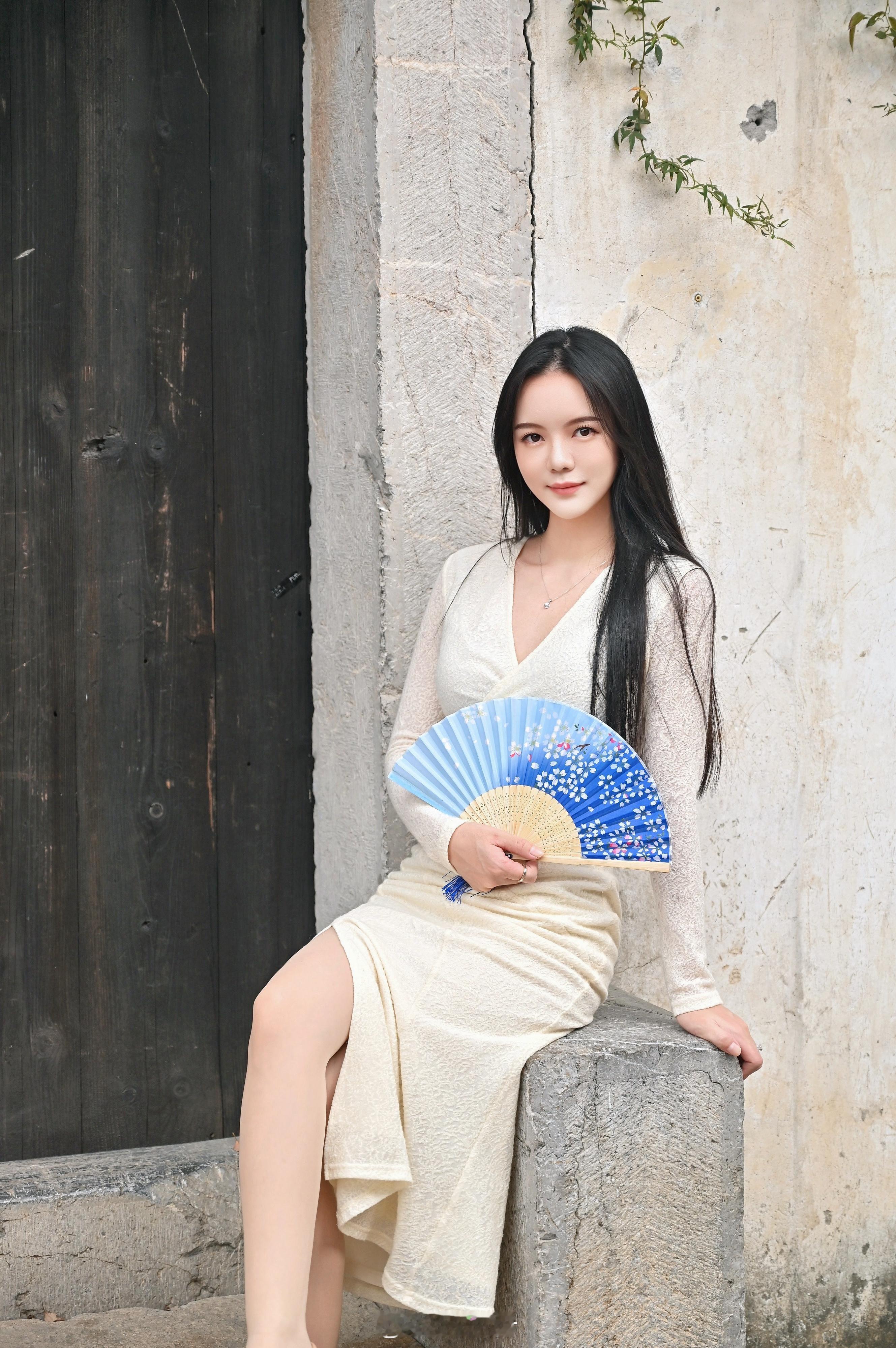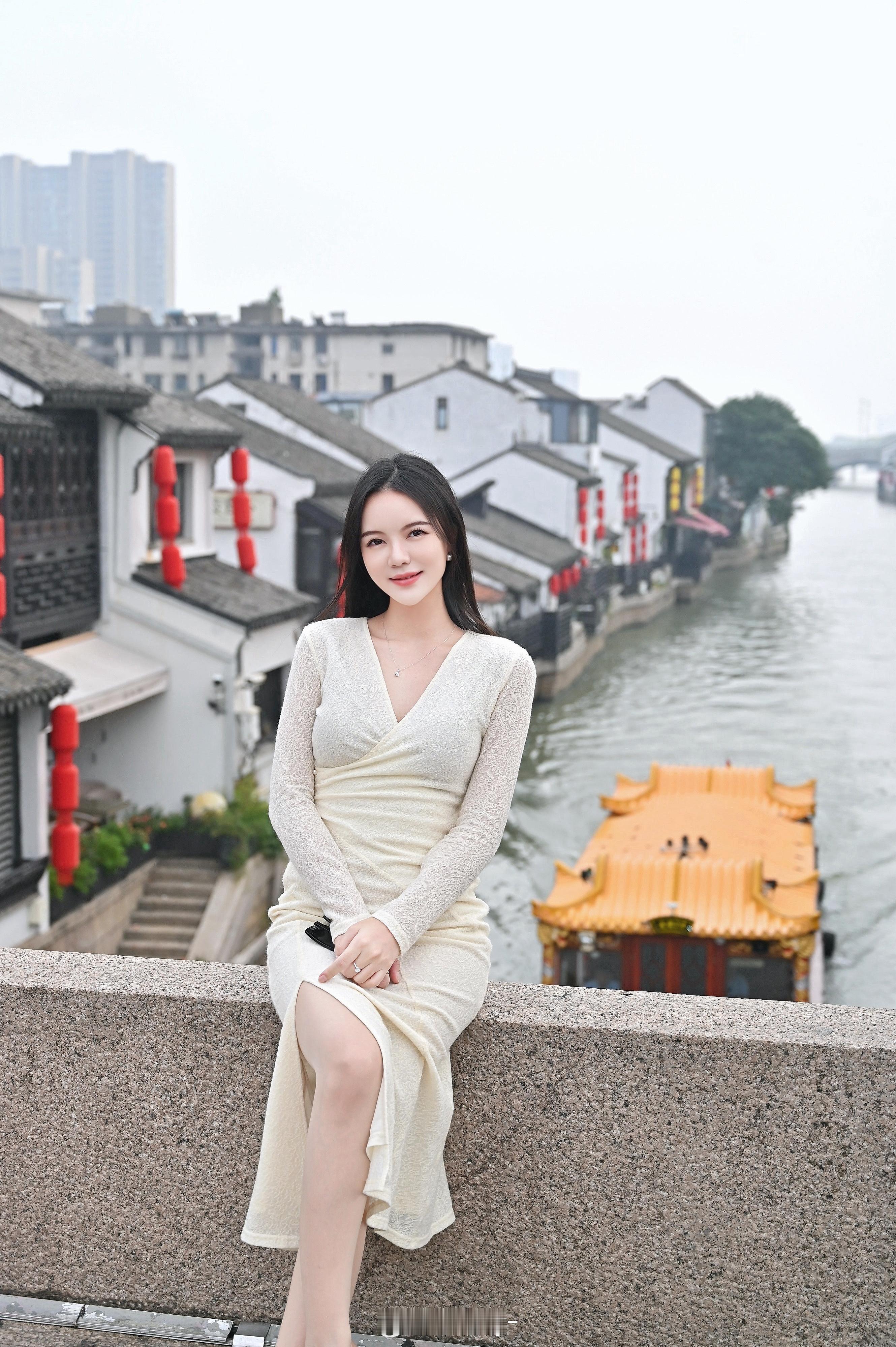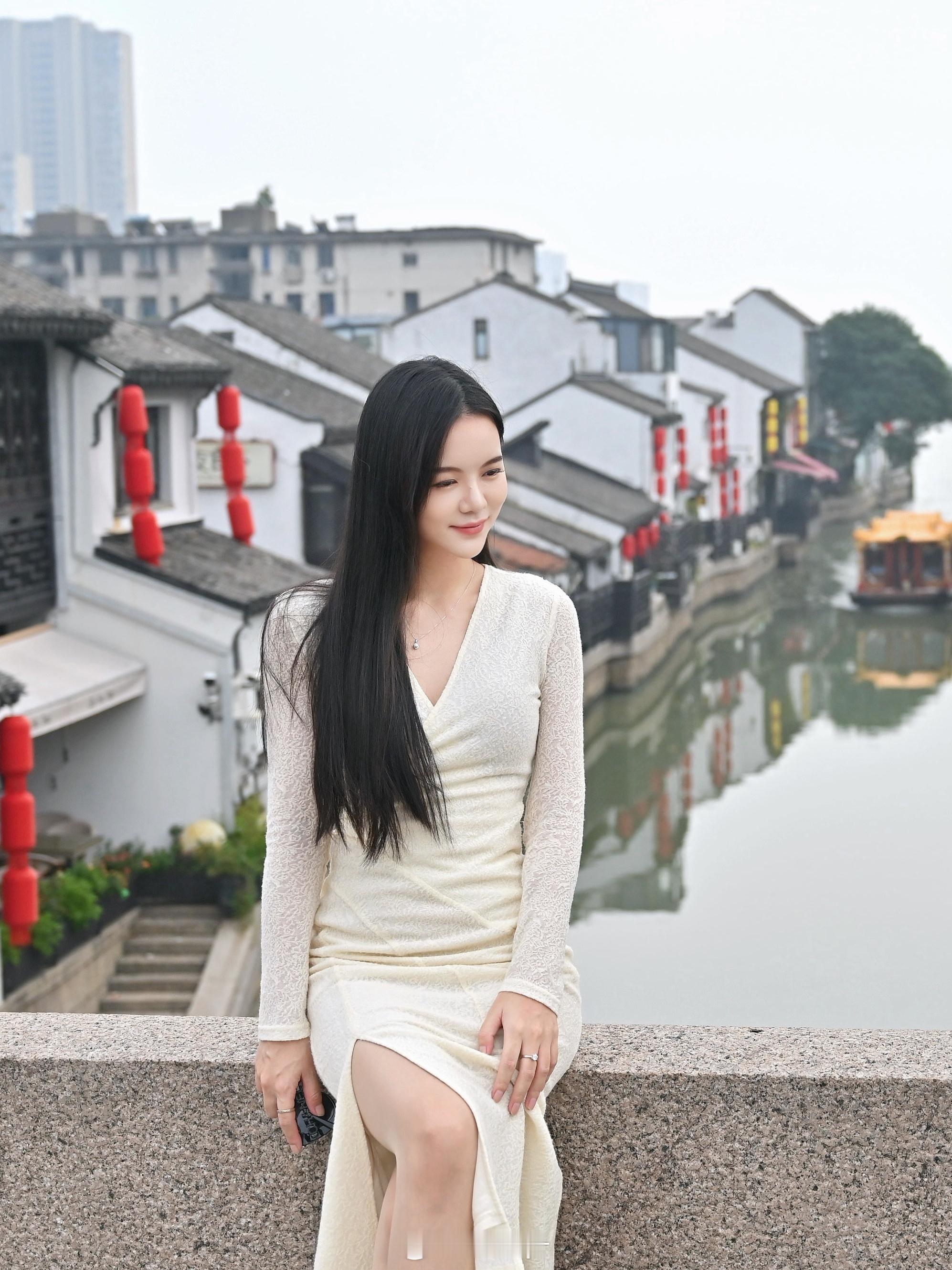 《牛仔蓝的温柔褶皱》原创诗词原创看图片配诗牛仔的蓝揉进抹胸的弧度褶