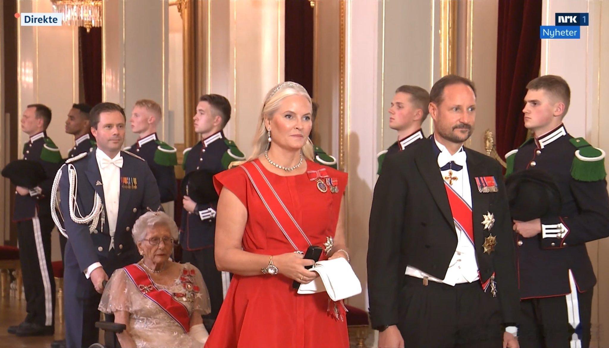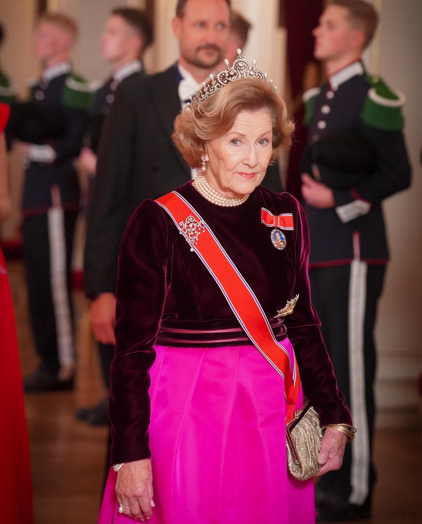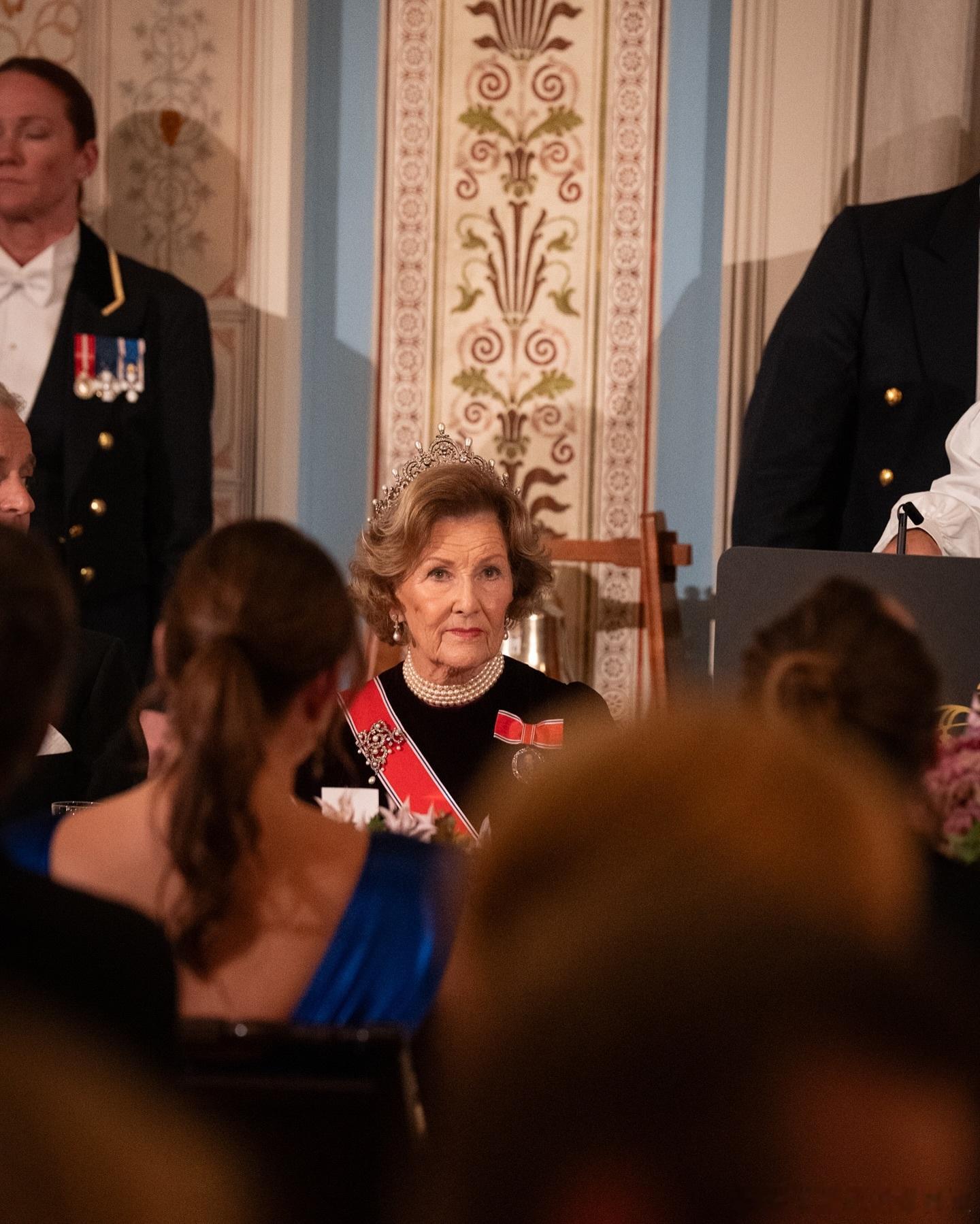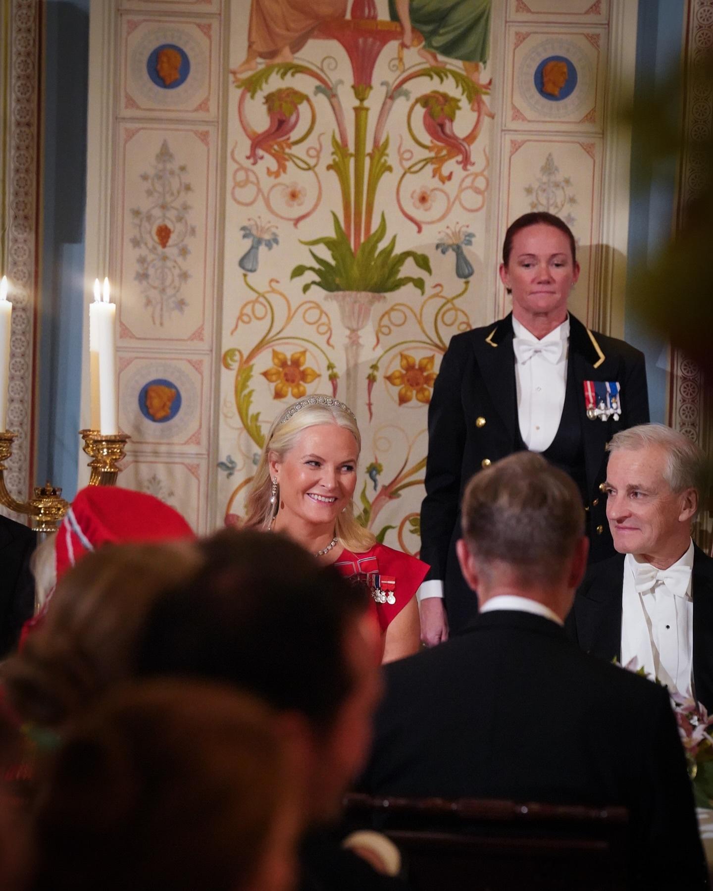 新闻 2025.10.23 挪威王室成员出席一年一度接待晚宴,主要是宴请国会议员,zf官员等人,梅特终于把小英的钻石项链薅上了(截止到目前,除了小英的成年冠还没被薅,其他属于小英的私人珠宝,梅特都戴个遍[二哈],亲妈积极薅闺女珠宝,活久见呐),梅特的新礼服来自Carolina Herrera。