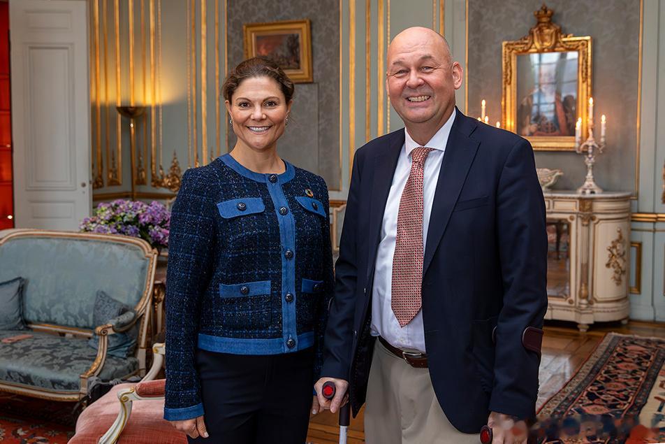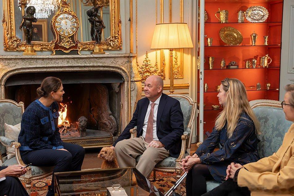 新闻 2025.10.23 瑞典女王储维多利亚的两个公务,分别在斯德哥尔摩皇宫接见联合国开发署的官员和出席由H&M基金会在斯德哥尔摩市政厅举办的全球变革奖颁奖典礼,大维旁边站着的男性就是H&M的总裁丹尼尔·埃尔弗。大维的两件旧外套分别来自Baum und Pferdgarten和Filippa K。