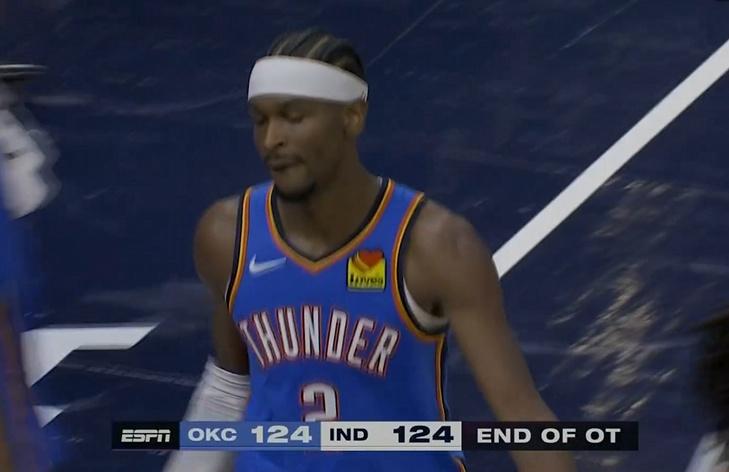 亚历山大绝杀球投出三不沾!雷霆连续2场打进双加时。 步行者和雷霆的总决赛重演打进第二个加时,卫冕冠军赛季开始连续两场双加时 。 今天雷霆和步行者加一起单加时到现在罚了85个球了。亚历山大一人罚了21个。
