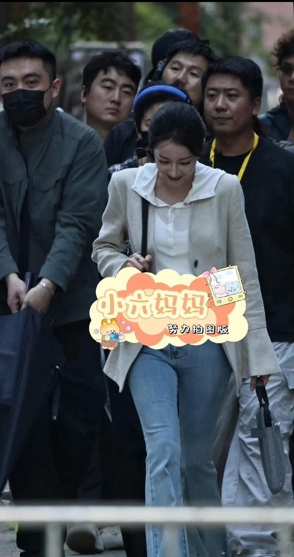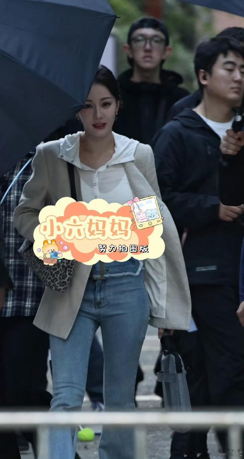 张天爱跟素人合影,胯真的好宽,大宅院似的