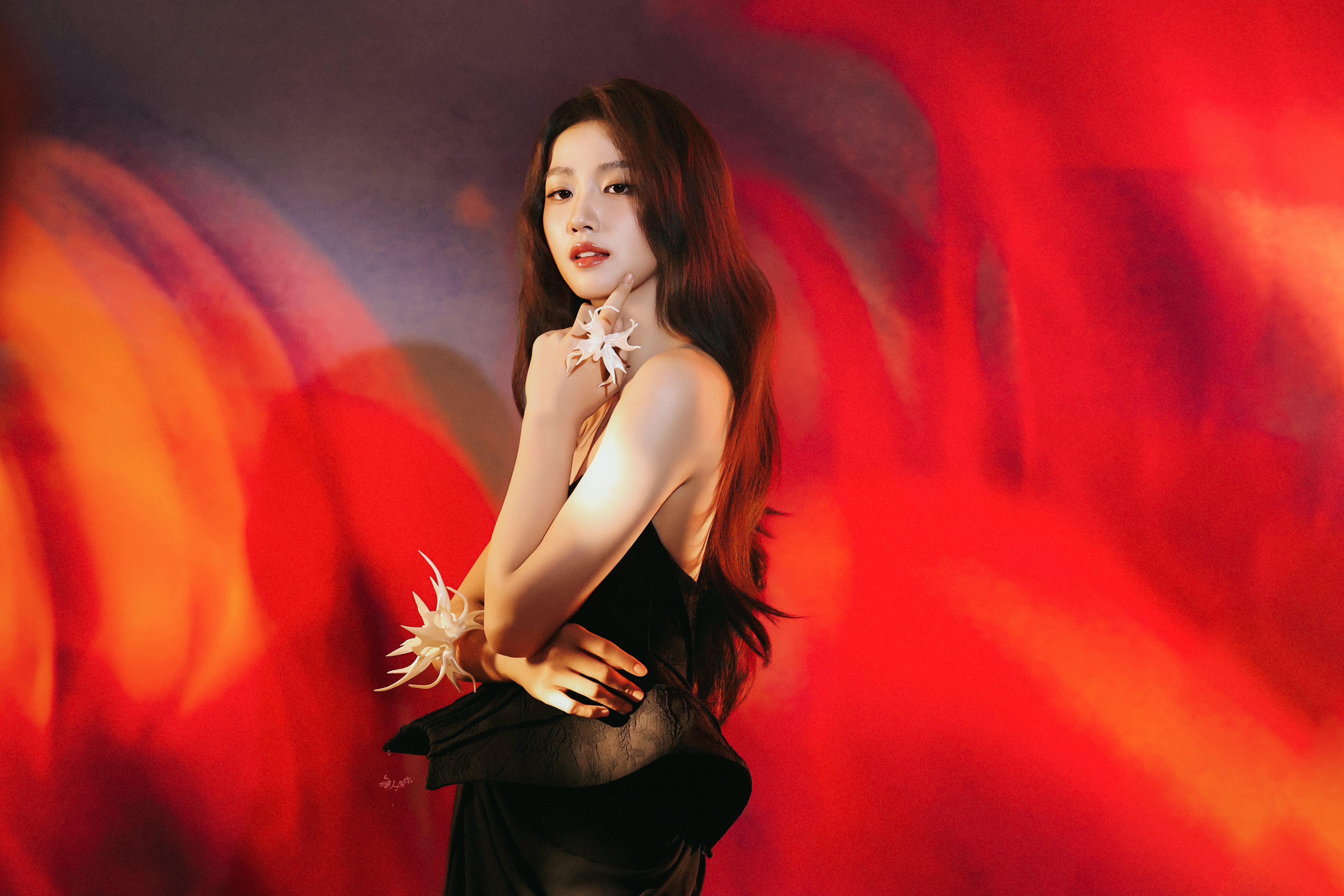 卢昱晓 黑裙裁碎霓虹的绚烂,在光影涡旋里伫立,以一身冷艳,将夜的深邃谱成独属于自己的风尚狂想。卢昱晓站姐VOGUE出图