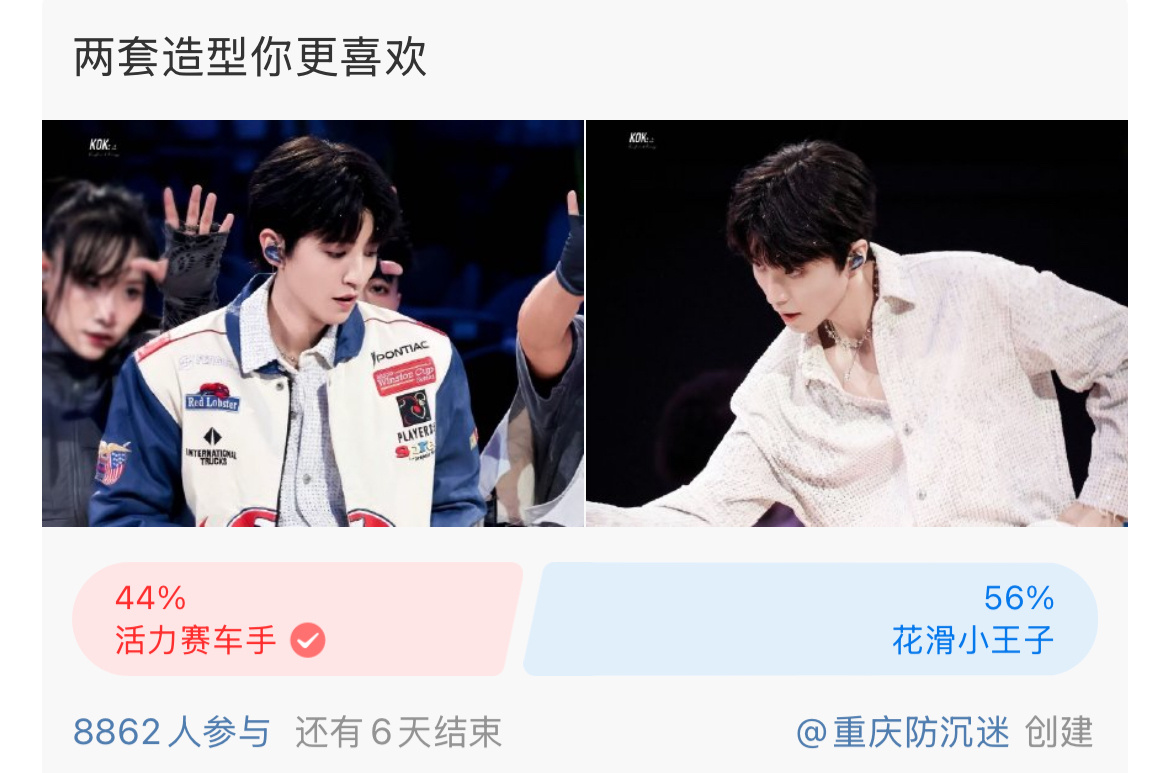 造型pk:花滑小王子(56%)>活力赛车手(44%)
