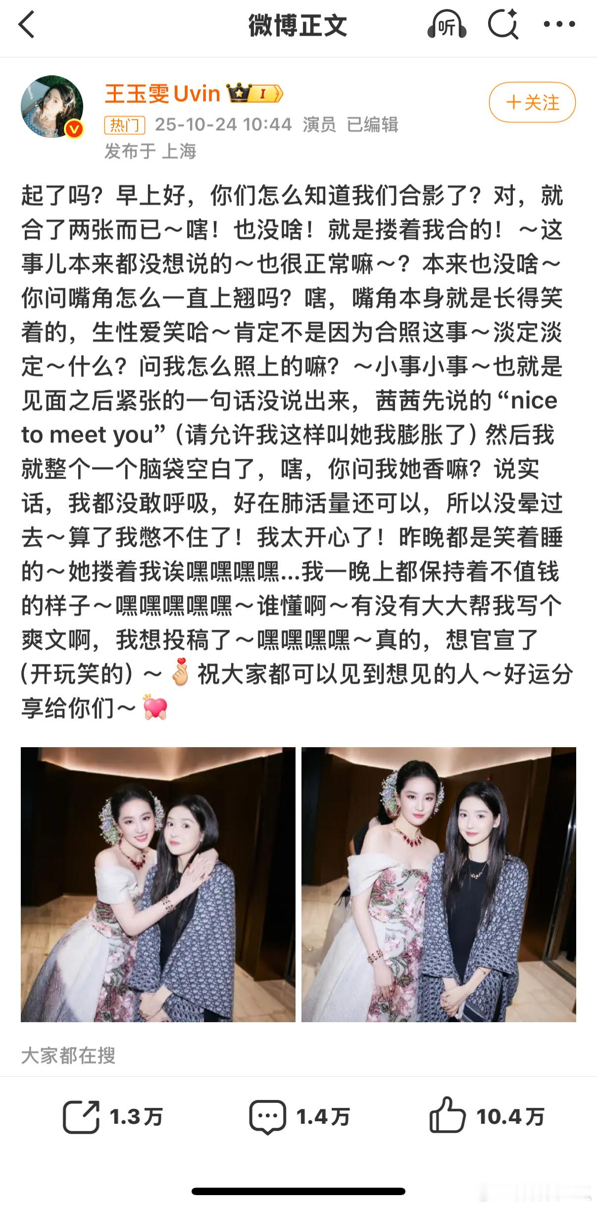 王玉雯想和刘亦菲官宣了王玉雯演我追星[捂嘴哭][捂嘴哭]接王姐追星运[干饭人]