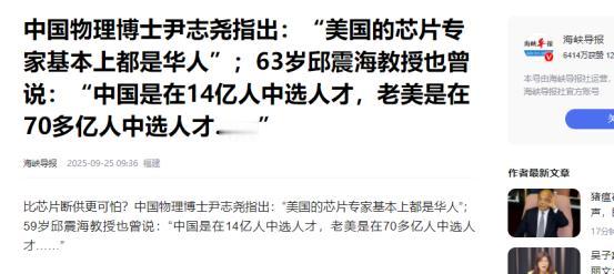 中国物理博士尹志尧直言:美国芯片专家中,很大部分是华人,中国在14亿人口里选人才,美国却能全球选! 美国那套 “全球抢人” 的路子,现在早不是风光无限了。以前大家都觉得,美国靠 H-1B 签证、硅谷的高工资,能把全世界的芯片人才都吸过去。但如今这招越来越不灵了,美国的人才优势正在逐渐瓦解。 美国半导体最先进的20种设备,其中有70%是中国留学生主导做的。不过目前,这些人几乎九成都回国了。过去五年间,约有4500名华裔科学家从海外回到中国,其中半导体领域的人才回流尤为突出。 从DeepSeek核心团队成员潘梓正放弃英伟达全职offer,到前苹果芯片工程师加入复旦大学微电子学院,海外华人工程师的回国潮正在重塑全球科技人才版图。 而中国半导体产业的发展环境正在根本性改善,从政策支持到资金投入,从市场机会到技术挑战,中国正在为海外人才提供前所未有的发展机遇。 中国各大高校纷纷开设半导体学院,国家大基金二期投入2000亿吸引人才。2025年,清华大学集成电路学院与中芯国际联合培养的首批毕业生进入产线,推动技术迭代。 美国半导体行业到2030年将面临严重的劳动力短缺,缺口将达6.7万个。美国半导体产业的技术工人本就不多,如今突然新增大量专业岗位,自然会出现巨大的劳动力缺口。 英特尔大学研究合作主管加布里埃拉・克鲁兹・汤普森说,半导体行业多年来一直面临劳动力短缺的挑战,她担心是否有足够“可用且有才华的技术工人”填补英特尔新增职位。 美国政府试图通过一系列政策法案来解决STEM人才短缺问题,如《无尽前沿法案》《2021年美国创新和竞争法案》《2022年美国竞争法案》《2022年芯片与科学法案》等。 这些法案以立法的形式保护本国科技产业,吸引科技产业加大对美国的投资,多方面为科技人才的发展提供优越条件。然而,这些政策的效果还需要时间来检验。 台积电在美国亚利桑那州建设的工厂就遭遇了严重的劳动力短缺问题,台积电从台湾增派500名专家赴美协助安装设备,但仍然面临诸多困难。美国工厂的施工进度缓慢,成本超预算25%,总投资后来涨到400亿美元。工会的抗议和安全问题也让台积电头疼不已。 美国半导体行业的人才困境还体现在薪资方面。虽然硅谷的薪资水平仍然很高,但中国一线城市的薪资正在迅速追赶。 据PCI人才管理顾问咨询公司的一项调查,中国基础工程师职位的工资是硅谷同级别员工收入的一半,但是到了主管层,薪资差别就消失了。拥有外企工作经验的人群,通常能拿到比同级别员工高30%甚至1倍的工资。 中国在半导体领域的自主创新也在不断取得突破。2025年,中国集成电路出口额达1595.5亿美元,同比增长17.4%,超过手机成为第一大出口商品。其中车规级和工业级芯片占比超40%,在东南亚、中东市场的份额超越美国。中国芯片自给率从2020年的30%提升至2025年的70%,消费电子芯片基本实现自主可控。 美国原本以为可以通过全球抢人来维持其在半导体领域的领先地位,但如今却发现,这种优势正在逐渐消失。中国凭借庞大的人口基数、不断改善的科研环境和持续的政策支持,正在吸引越来越多的半导体人才回流。美国的人才困境和中国的快速崛起,将重塑全球半导体产业的格局。 来源:海峡导报 【中国物理博士尹志尧指出:“美国的芯片专家基本上都是华人”;63岁邱震海教授也曾说:“中国是在14亿人中选人才,老美是在70多亿人中选人才......】