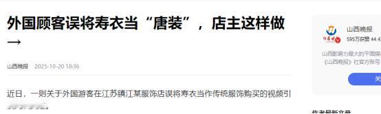 在中国死人才穿的寿衣,旅游的老外看上了!而且价格便宜,看看活人穿上寿衣的样子,真好看! 这事说出来是挺颠覆认知的。江苏镇江就刚上演过这么一出实打实的文化乌龙。一家寿衣店里冲进七八个外国游客,围着橱窗里绣松鹤的丝绸外套两眼放光。老板当场就懵了,这可是给逝者准备的衣服,咋还有活人抢着试穿? 带头的老外比划着问:“这是不是中国传统唐装?”老板赶紧摆手:“这是寿衣,死人穿的!”可老外们根本听不懂,还以为老板在玩饥饿营销,掏出手机疯狂拍照。 其中一个金发姑娘直接把外套往身上比划,对着镜子直喊“amazing”。老板急得直冒汗,连说带比划解释了十分钟,老外们才半信半疑地离开,临走前还买了几顶百岁老人戴的帽子。 你说这事儿邪乎不?寿衣在咱们这儿是白事专用,可在老外眼里咋就成了时尚单品?其实啊,这背后藏着中西文化的巨大差异。 就拿松鹤图案来说,咱们觉得是“驾鹤西去”的意思,老外却看成了东方神秘主义的象征。早年间欧洲贵族就喜欢在玻璃器上刻松鹤图案,觉得这是“来自东方的优雅”。再加上寿衣的真丝面料和手工刺绣,在老外眼里比奢侈品还高级。 更绝的是有些老外专门把寿衣当“复古时装”穿,广西有位网友就遇见过一位非洲裔女子,穿着绣满牡丹的寿衣逛商场,回头率比模特走秀还高。还有日本年轻人,把中式寿衣改良成“暗黑风”外套,搭配马丁靴和骷髅头项链,在涩谷街头招摇过市。 这事儿还真不是个例,山东曹县的棺材厂,每年生产30万口棺材,其中四分之一都出口到日本。日本家庭办丧事,点名要曹县产的桐木棺材,说这是“能让灵魂安息的东方神木”。重庆荣昌的夏布,原本是做孝服的材料,现在成了日韩高端定制礼服的抢手货。韩国人结婚、成人礼都要穿夏布衣服,甚至把夏布用到医院的无菌服上。 你还别觉得奇怪,殡葬文化在国际上早就玩出了新花样。天津曾举办过一场殡葬科技文化展,模特穿着改良版寿衣走T台。有融合汉服元素的“喜丧系列”,也有带LED灯的“未来科技系列”。台下观众虽然看得直皱眉,可开展三天就接到了200多份海外订单。更绝的是,有公司推出“太空寿衣”,声称能让逝者的灵魂在宇宙中永恒。 不过这里面也有闹笑话的。韩国IVE女团拍MV时,把中式寿衣当团服穿,还宣称是“大韩传统服饰”。结果被眼尖的网友发现,衣服上的盘扣全是双数——这在咱们这儿是给逝者用的。韩国教授还嘴硬,说“双数代表吉祥”,结果被扒出历史文献,双数盘扣在明清时期就是殡葬专用。 其实文化交流就像拆盲盒,你永远不知道会开出啥惊喜。就拿寿衣来说,在咱们这儿是忌讳,在老外眼里可能就是艺术品。 但有一点得记住:尊重文化差异,别把白事当儿戏。就像镇江那位老板,宁可少赚钱也不忽悠老外,这才是生意人该有的良心。 毕竟,文化输出不是强买强卖,而是让世界看到中国文化的多面性。从秦始皇陵兵马俑到故宫文物,从熊猫玩偶到春节灯笼,咱们老祖宗留下的宝贝多着呢,就看你会不会玩出新花样。 来源:山西晚报 【外国顾客误将寿衣当“唐装”,店主这样做→】