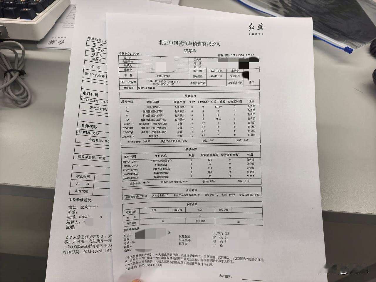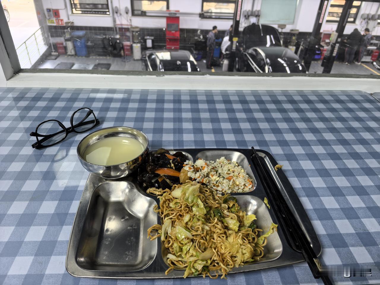 四万公里了!来给我的爱国者H9做最后一次免费保养,这次项目挺多,机油空滤机滤和炭罐空滤,还做了润滑和排水管疏通,十点多开始,不到十二点我正跟吃客户餐呢就通知我取车了,效率是真的高!不过客户餐这块建议提升提升,好歹也是中式豪华车的典范啊,炒方便面都上场了,然后一个炒饭和一个菜,就没了