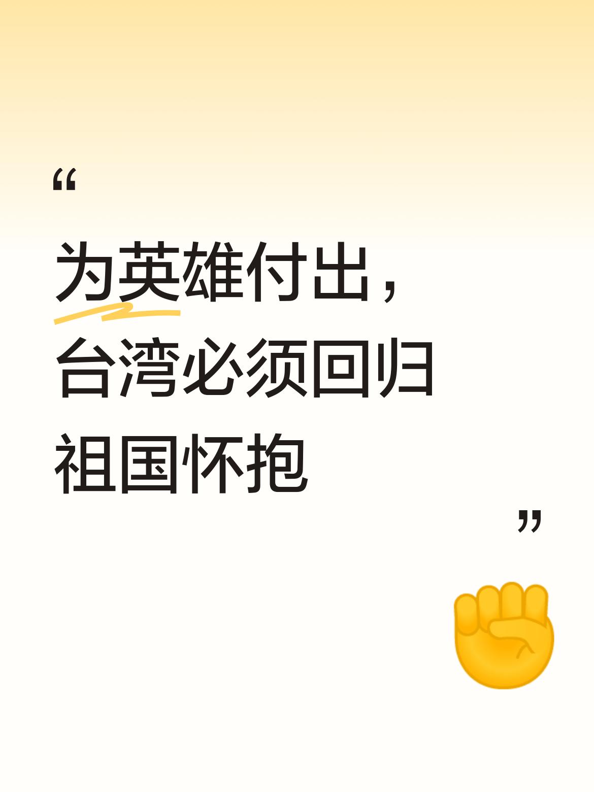 为了英雄的付出,不辜负英雄的期望,为了中华民族,台湾必须回归祖国怀抱!