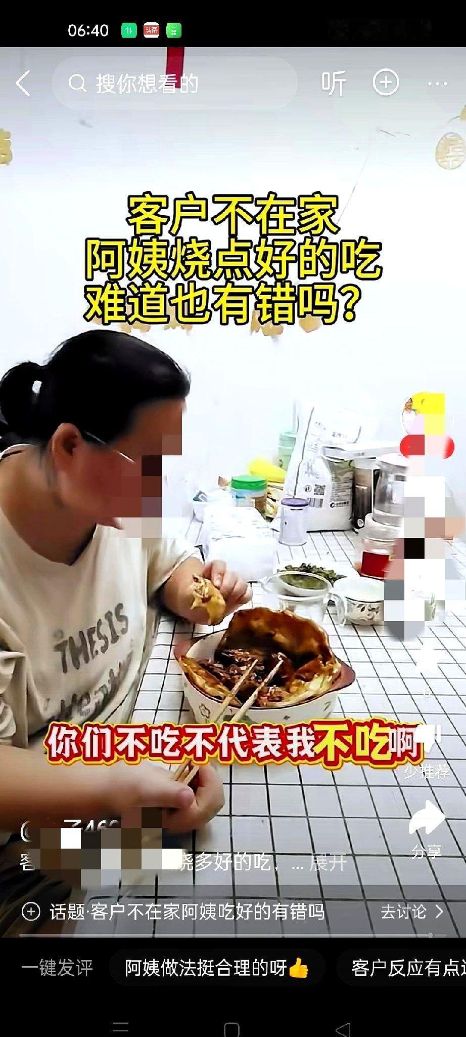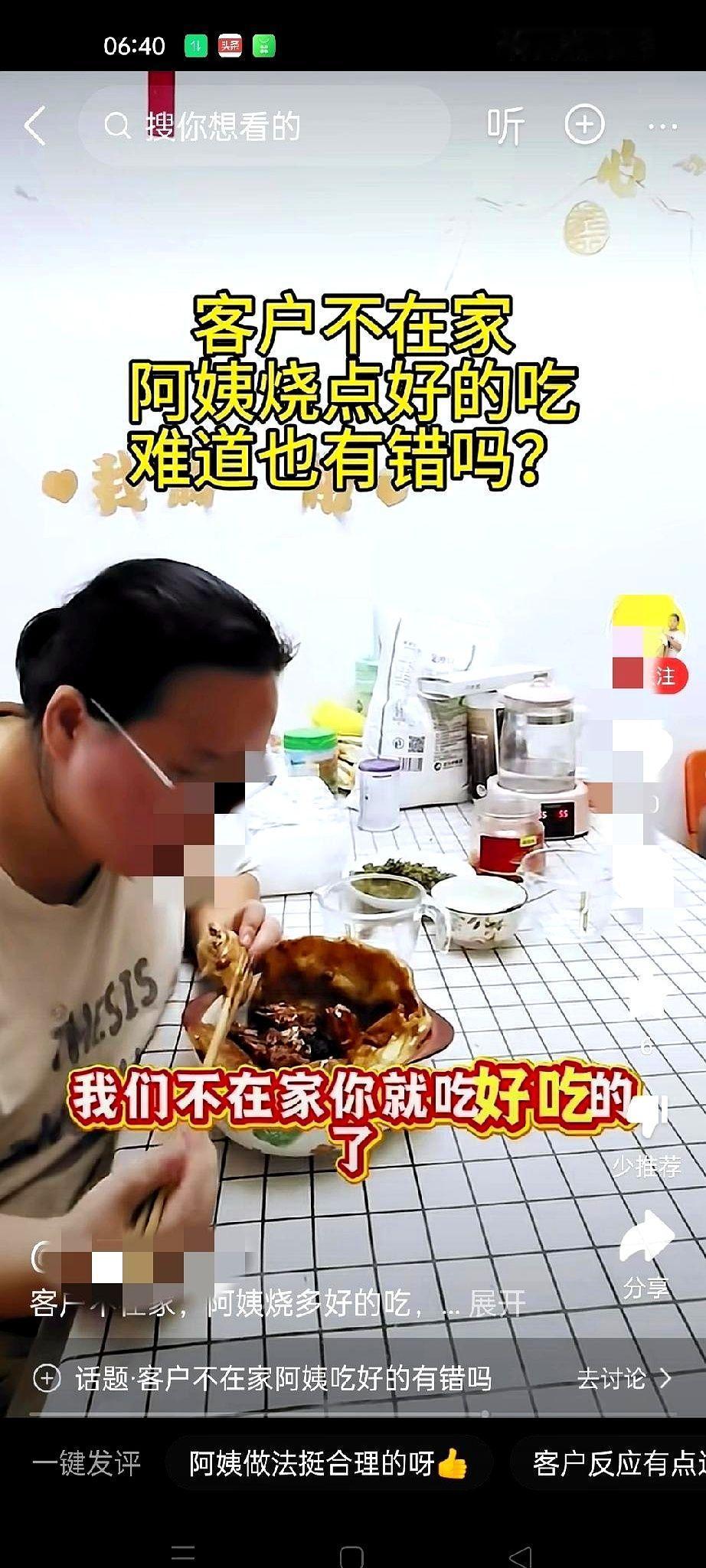 杭州一位雇主推门进屋,保姆正对着刚出锅的小鸡贴膜,满嘴油光,面对“那是我家的鸡吗”的灵魂发问,阿姨脱口一句“我自己掏钱买的”,结果冰箱一查,雇主昨晚才买的土鸡蒸发,第二天这位阿姨被请下岗,你可以吃鸡,但不能撒谎—这是双方对外唯一一致的说法。 乍看只是“一只鸡”的小剧场,背后却是千亿家政市场最脆弱的玻璃心,雇主在家上班也好,通勤打工也好,三餐冰箱钥匙都握在阿姨手里,一旦信任值归零,合同、监控、银行卡流水统统白搭。 有个数字不妨摆出来,北京家政协会去年调查显示,61%的纠纷源头是“权责边界模糊”,当中食材管理排名前三,也就是说,谁家的肉谁能吃,属于最容易踩雷的灰区,家政公司会给阿姨发“操作指南”,但落地到每个家庭往往变成口头约定,一张丢了的小票就能让关系崩盘。 站在保姆视角,大热天忙前忙后,看到冰箱里一只现成的鸡,说实话很多人都会心动,可只要没得到许可,哪怕只是一口汤都算越界,打工人要讲劳动法,雇主也得守合同,但这档口先说了谎,所有同情分直接清零,这跟职场同事顺走办公用品再编理由一个逻辑。 下一步怎么走,业内人士建议在家政合同里列明“食材使用细则”,餐费抵工资或直接给零用金都行,只要写进条款就能避免扯皮,当然更重要的是双方都要守信用,毕竟冰箱里的那只鸡吃完了还能再买,信任碎了可没那么好补,只问一句,你愿意把钥匙交给一个连鸡都不敢实话实说的人吗。