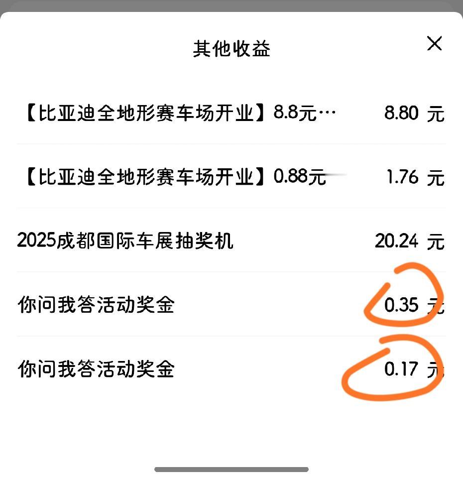 今天又是收获满满的一天, 刚刚看了有成都车展还有比亚迪汽车征文的奖励都发了。 当然了还有你问我答也发了两笔, 不过这个👆🏻奖励会不会有点少呀! 有可能是我没按要求好好的 你问我答~[我想静静] 友友们都拿到奖励了没?