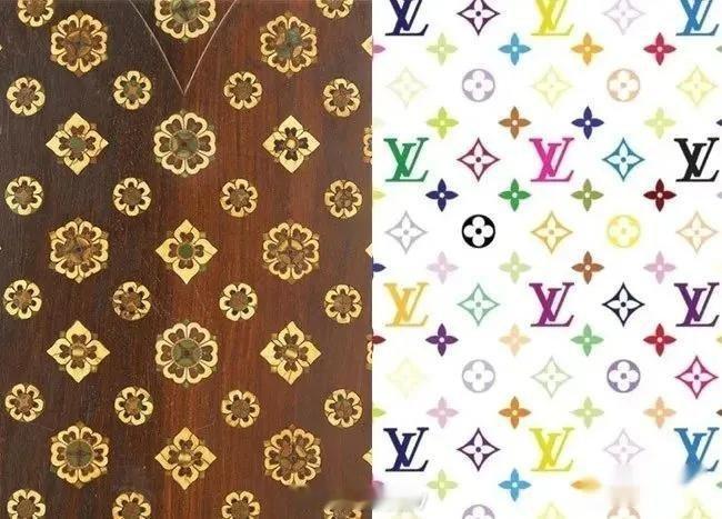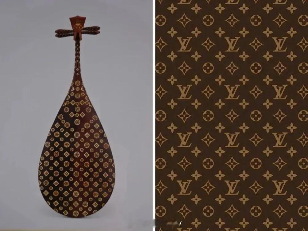 比如LV的老花和大唐紫檀木画槽琵琶的背面设计如出一辙。