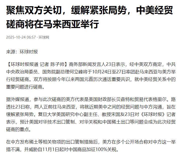 中国和美国第5轮关税谈判,很快将在本周六和星期天在马来西亚举行。美国财政部长贝森特临行前,称这次会谈是令人生厌的两天会谈,并威胁如果和中方无法就暂缓或解除稀土管制达成一致,美国将对中国实施包括软件、笔记本电脑以及发动机方面的出口管制,以报复中方的稀土管控。 贝森特这次这么横,其实就想让中国放开稀土出口。要知道,中国手里攥着全球90%以上高纯度稀土的加工能力,这东西可是造芯片、导弹、新能源汽车的关键材料。美国国防部去年都承认,要是中国真断了稀土供应,他们军工企业半年就得歇菜。 所以贝森特才急得放狠话,说11月1号要加100%的关税。可这威胁多半是装样子,美国自己的稀土矿还没影呢,真要彻底闹掰,他们汽车、电子行业亏得只会比咱们多。 更有意思的是,贝森特还翻旧账,提特朗普那时候的协议,逼中国买美国农产品。可他压根不提,这三年中国从巴西买的大豆早超过美国了,美国豆农卖不出去,是市场自己选的,不是咱们故意不买。这种“我不管,你就得买”的霸道劲儿,连美国自己的媒体都看不过去,《纽约时报》都评说他们这谈判策略“没新意,还不切实际”。 面对美国这么逼,咱们中方态度很明确:要谈可以,但得互相尊重。外交部发言人郭嘉昆21号就说了,“打关税战对谁都没好处,美国得拿出点诚意来”。这话可不是随便说的,上周海关总署刚公布数据,今年前三季度咱们对东盟出口涨了7.2%,对“一带一路”国家的进出口占比都到32.3%了,美国市场没以前那么重要了,咱们有底气对不合理要求说“不”。 大家还关心前几轮让贝森特发怵的李成钢这次来不来,结果这次中方牵头的是副总理何立峰。这不是李成钢不敢来,而是谈判级别升了。何立峰副总理来,本身就说明咱们重视这场会谈,但也传递了个信号:要是美国还把谈判当儿戏,咱们随时能不谈。 现在看,这次谈判大概率有三种结果。要么美国退一步,在农产品关税这些不敏感的地方让点步,换咱们稍微放宽点稀土出口,最后签个象征性的声明;要么谈崩了,美国真加关税,那咱们也会反制,比如限制买美国汽车、半导体,或者把稀土管得更严,贸易摩擦变成持久战;还有可能双方先把稀土、关税的事儿放一放,在气候合作、医药研发这些事儿上找找共同点,毕竟中美都是大国,真彻底闹僵对谁都没好处。 不管最后怎么样,有一点肯定的是,咱们中国不会因为美国威胁就松口。就像《人民日报》说的,“中国的发展不是靠谁赏的,咱们有本事也有底气应对各种挑战”。要是美国还抱着“美国优先”的老想法,谈判桌上只会碰一鼻子灰。现在都是全球化时代了,合作共赢才是正道。