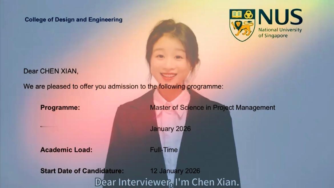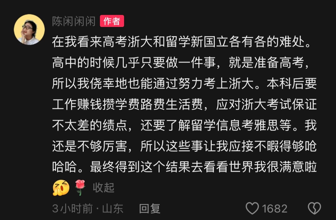 2025年10月23日,网红陈闲晒出了新加坡国立大学的录取通知书。