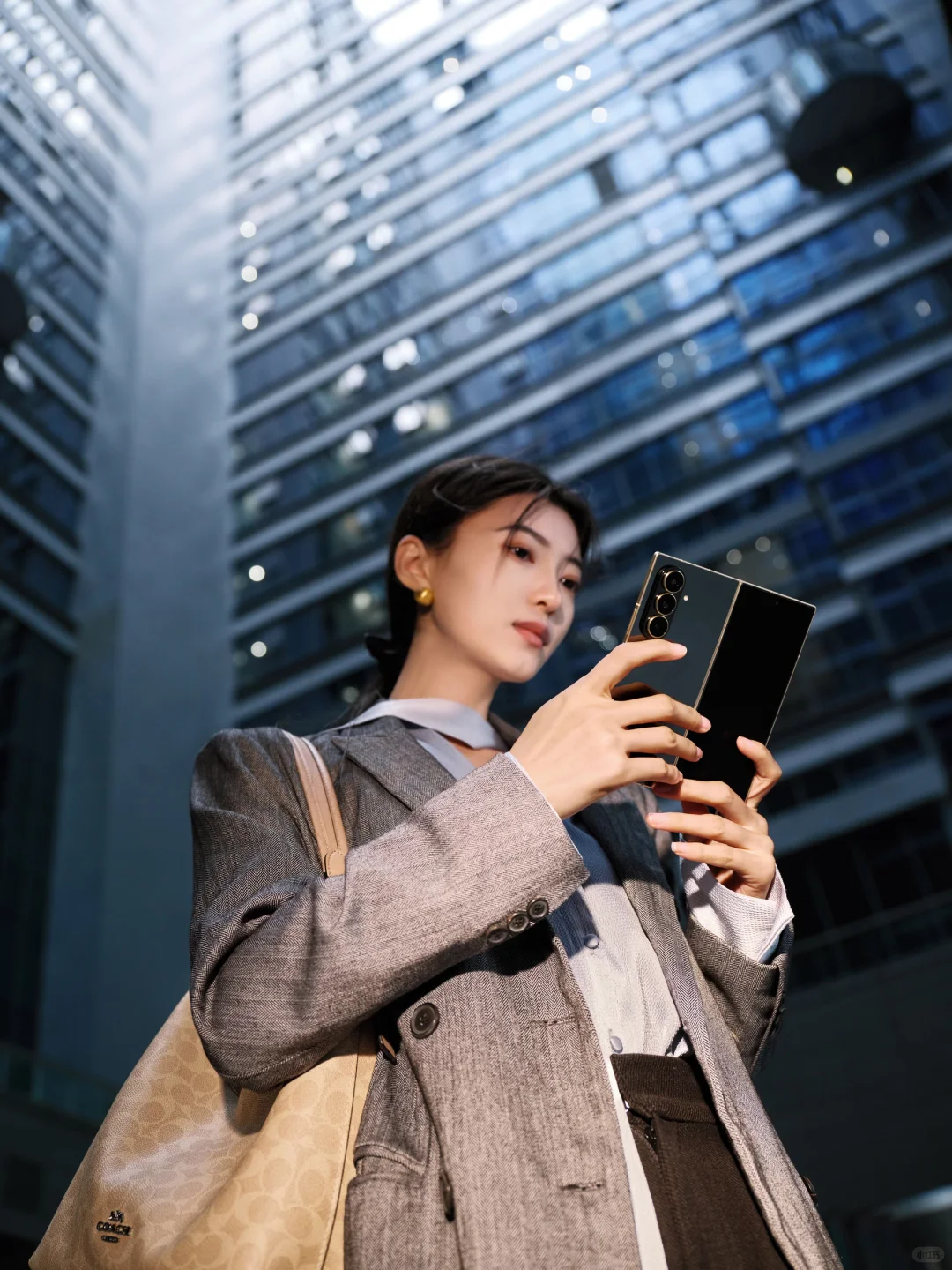 我选的「玄曜黑」机身超戳我。升级的装甲铝边框,还有三星独有的精雕纹理,大气又有质感。最惊喜的是它居然这么薄,折叠才 8.9 毫米,单手握不费劲。折痕也浅,不细看根本注意不到,而且听说「丹曦红」半小时就卖空了!