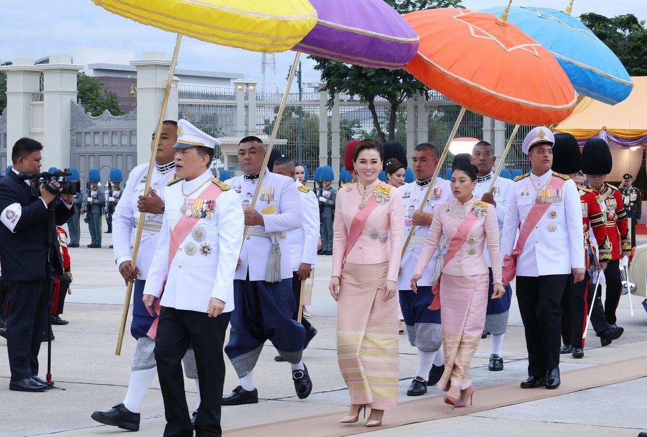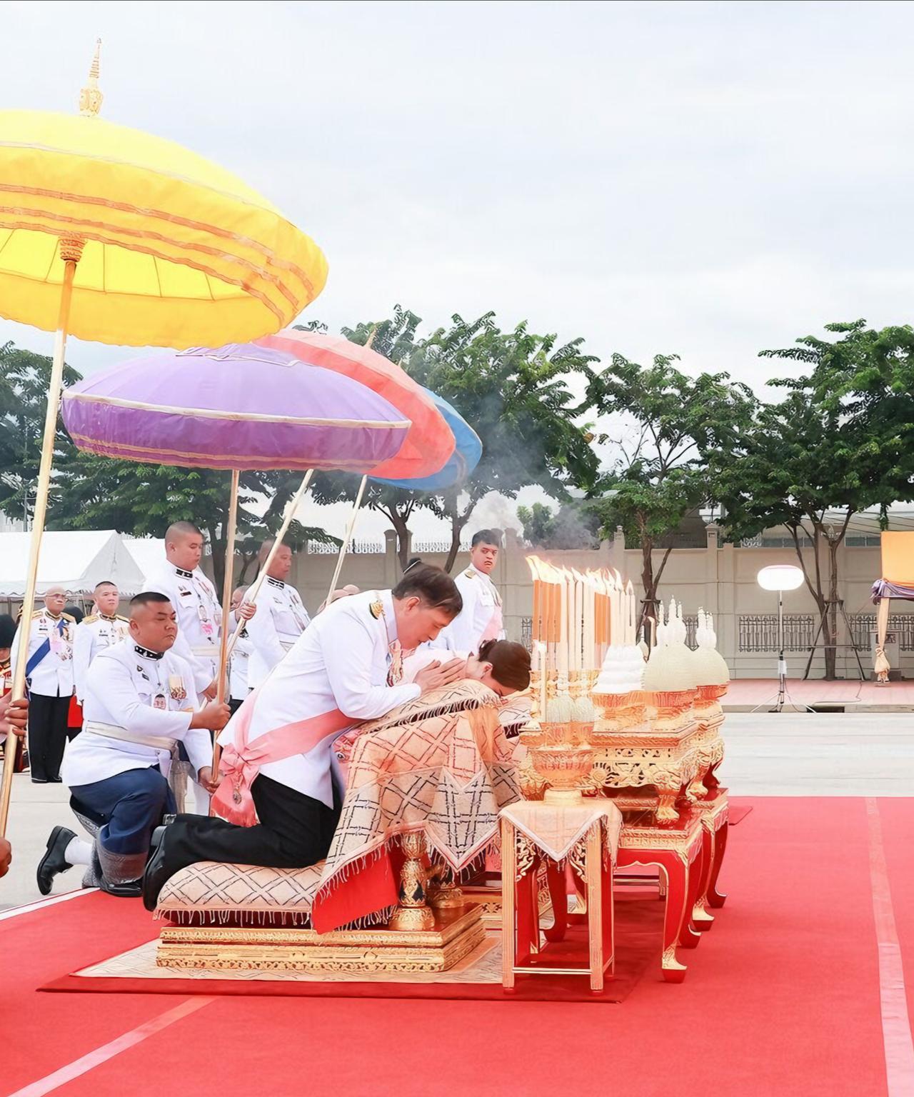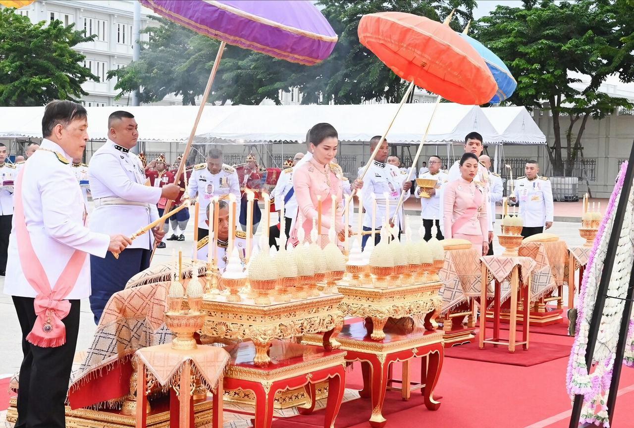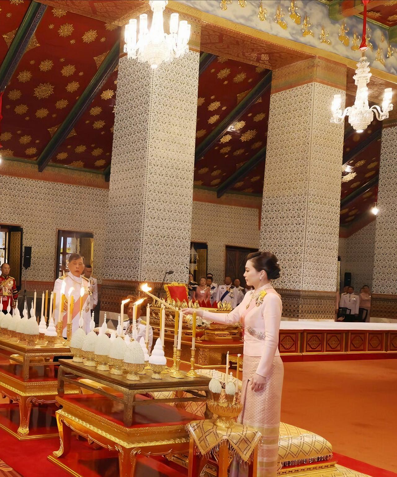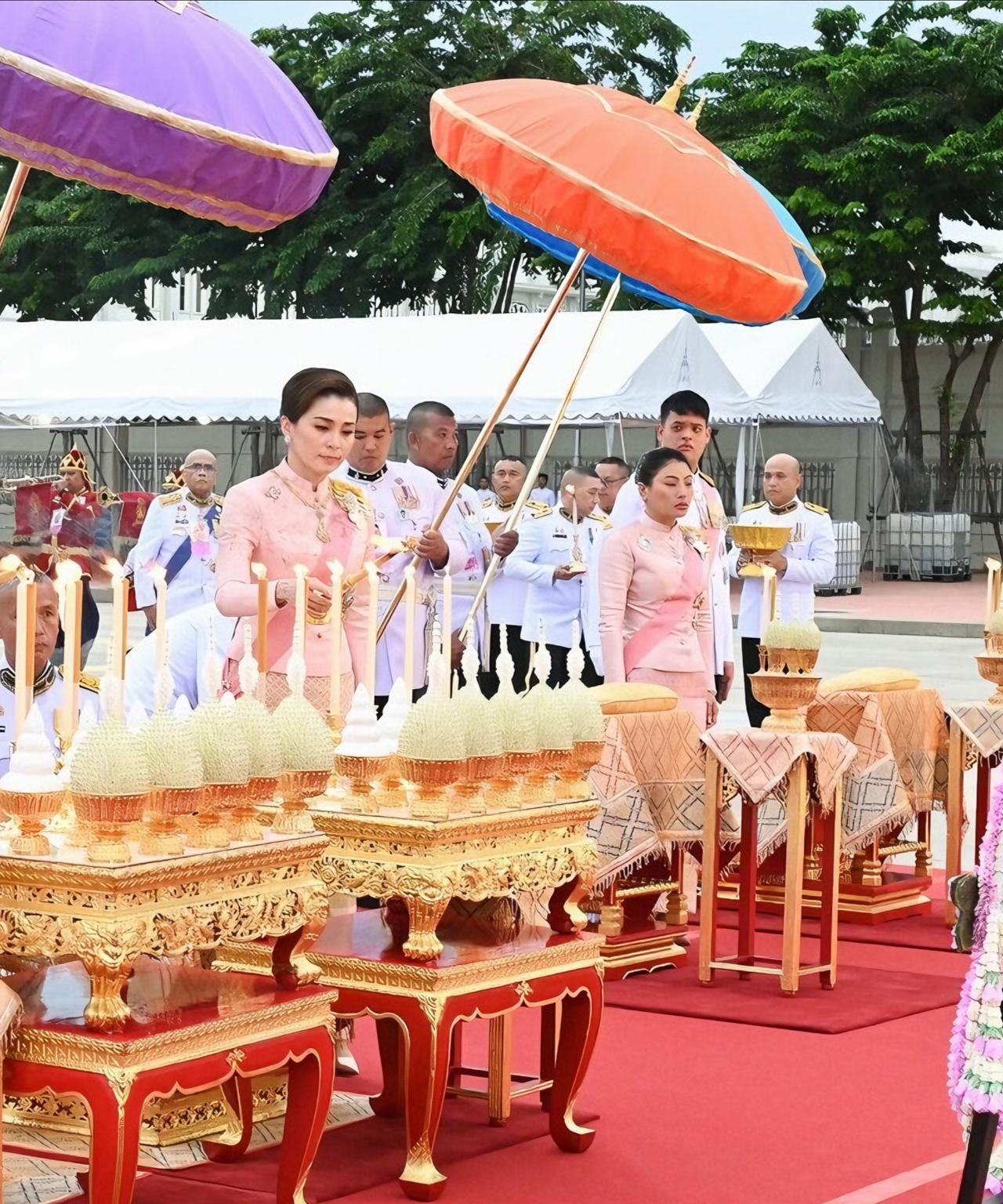 苏提达最新造型好美,樱花礼服仙气飘飘 2025年10月23日下午5点21分,国王和王后,乘皇家专车去杜斯特宫,朱拉隆功国王纪念碑敬献花圈,思蕊梵公主与提帮功王子也一同出席。众人抵达后,敬献个人花圈、点燃香烛,并摆上少量供品以表敬意。之后,他们又登上皇家专车,前往大皇宫阿玛琳·威尼猜王座大厅,参加朱拉隆功节皇家功德仪式。