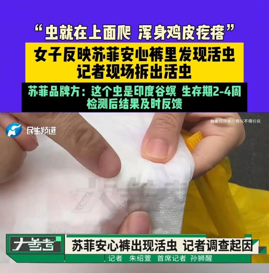 “安心裤”让虫子先住了?最近,一条视频把网友们看傻了:女子打开苏菲安心裤,里面竟有活虫在爬! 当事人说,自己一次性买了16包,用到第10包才发现。视频里,密封袋里的虫子一扭一扭,谁看谁头皮发麻。她当场喊话苏菲:“我对说的每个字负法律责任!” 苏菲相关负责人回应:产品出厂有严格检测,虫源怎么进去还需核查,可能是仓储、运输环节出问题。但消费者不买账:密封包装咋还能进虫?要是没发现,直接贴身用,想想都恶心。 目前,双方都在等第三方检测结果。市场监管部门也建议:保留好商品、购物小票和视频证据,必要时送检维权。 给大伙提个醒:贴身用品别囤太多,拆包前先检查。遇到类似情况,第一时间拍照留证,找商家、平台或12315投诉。安心裤要真的“安心”,质量关先把好。