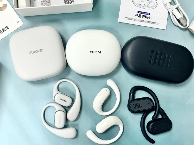 西圣Olite2单耳7g长时间佩戴也没什么负担;华为Free Arc也是比较轻的,整体体验感也可以;JBL音悦圈13g偏沉,久戴会有点压耳的感觉