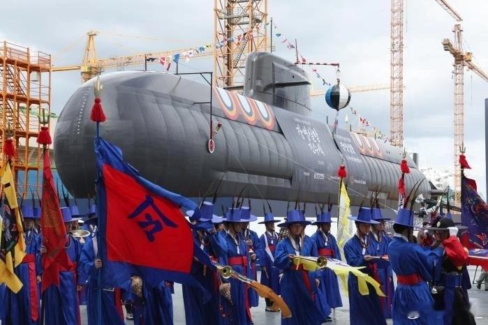 韩国KSS-III二批次首艇前天下水,排水量3600 吨,装锂离子电池。除了6具533毫米鱼雷发射管外,还有10个垂直发射单元。