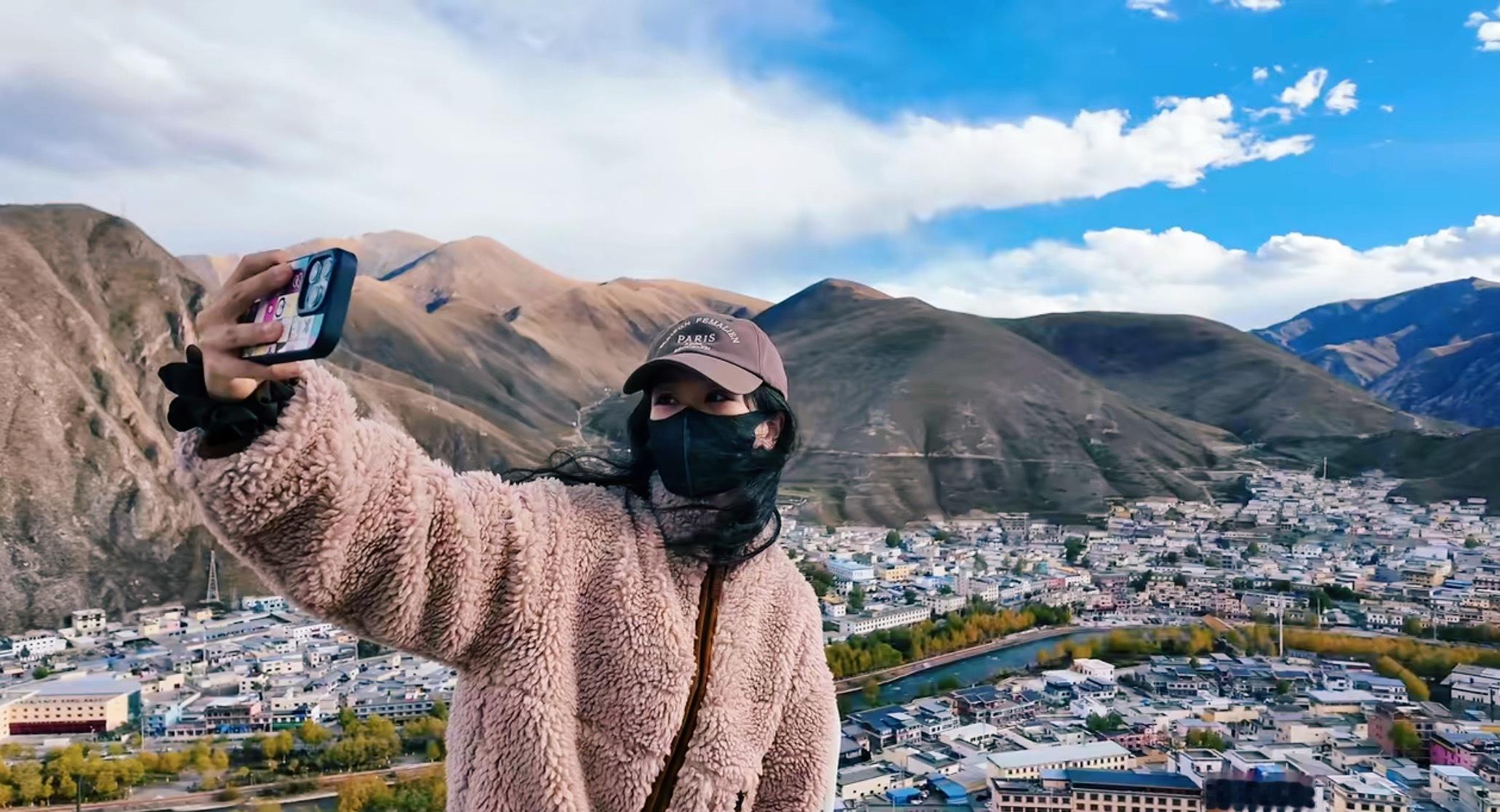 张天爱跟素人合影,胯真的好宽,大宅院似的