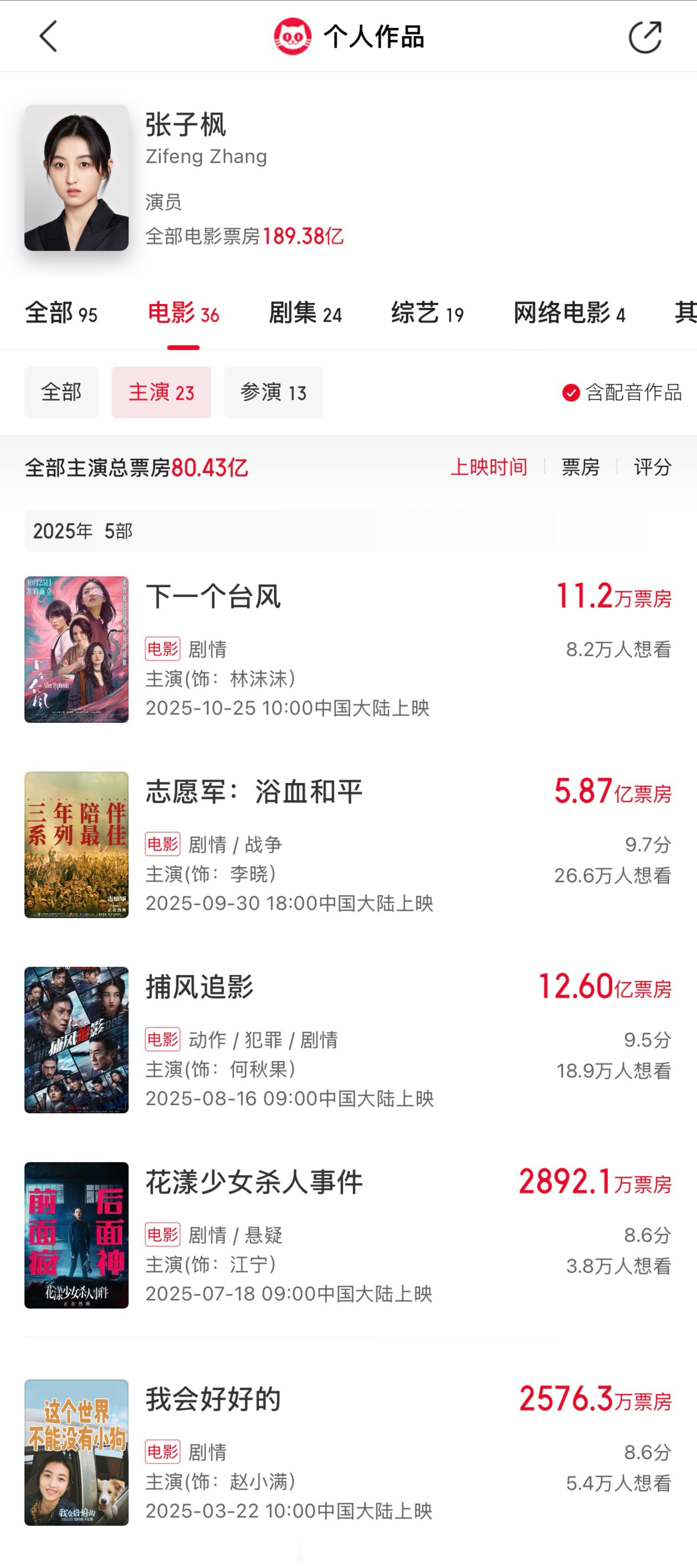 张子枫[超话] 今年是张子枫大银幕开挂的一年,无论表演质量,还是作品数量,共计5部电影上映,重点是她让人看到了差异化的人物塑造,而且无视觉审美疲劳。