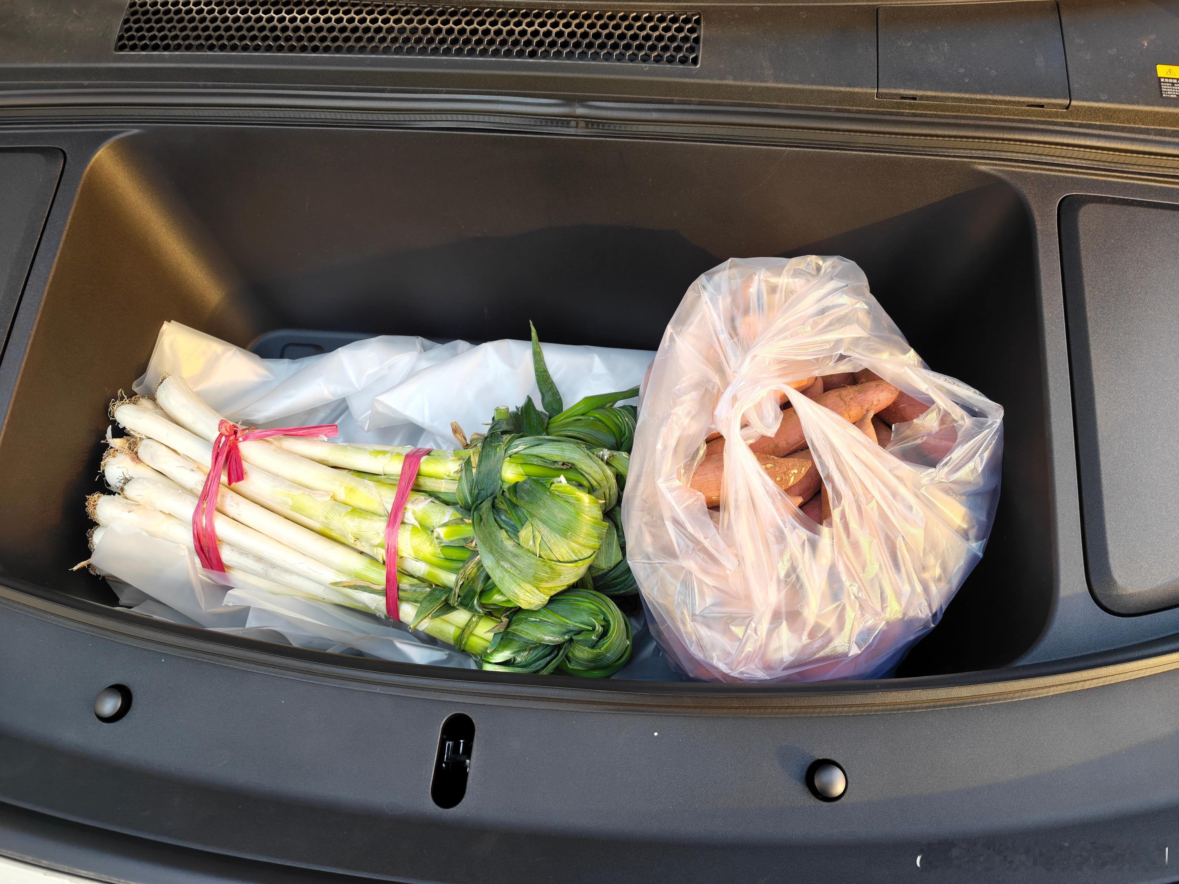 去秋菜市场买了捆葱,味有点大,放前备箱正合适,防止味道进入乘员舱