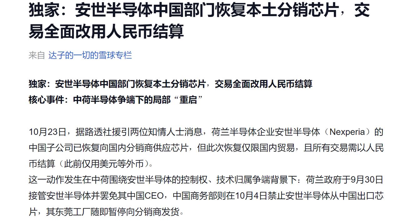 荷兰这次彻底傻眼了,安世中国已经恢复供货,只不过2个条件:1、只卖国内 2、只接受人民币结算 荷兰这次真的是竹篮打水一场空,想要明抢安世半导体,结果却只抢了个空壳子,安世中国不仅宣布独立运营,而且还宣布已恢复向国内分销商供货。 只不过供货有2个条件,首先就是暂时只卖给国内,其次是只接受人民币结算,这下安世中国的情况是越来越好了,荷兰是越来越难受了,要知道,安世荷兰总部,手里能控制的只有晶圆厂,根本没有办法生产芯片出售,这也就意味着,安世荷兰当前是一个瘫痪的状态。 那为了一个空壳子的安世,荷兰这一波操作下来,不仅丢了自己的国家信用,而且因为安世是欧洲汽车产业的核心供应商,现在欧洲汽车产业面临集体停摆危机! 大众汽车集团已宣布其德国沃尔夫斯堡工厂因“功率芯片”短缺全面停产,预计每日损失超1亿欧元。宝马位于慕尼黑的发动机工厂因“微控制器(MCU)”断供,暂停了X5系列SUV的生产;奔驰则因“传感器芯片”缺货,被迫削减S级轿车的产量,欧洲汽车制造商协会警告,若争议无法在10月底前解决,欧洲汽车产业链将面临至少3个月中断,损失超200亿欧元! 那交不出货,安世荷兰还要承担违约金。而且现在荷兰总部停摆,每天的损失那都是数以十万计算的。 不过对中国来说可能是好事,欧洲汽车的停工,最受益的不正是中国出海的新能源汽车厂商嘛! 而且荷兰甚至可能还要遭到中国的反制,毕竟ASML的光刻机可是要和中国申请稀土的。 只能说,荷兰还是太低估中国了,现在荷兰开了明抢他国企业的外头,那其他国家还敢去荷兰投资吗?荷兰这下子可是亏大了。