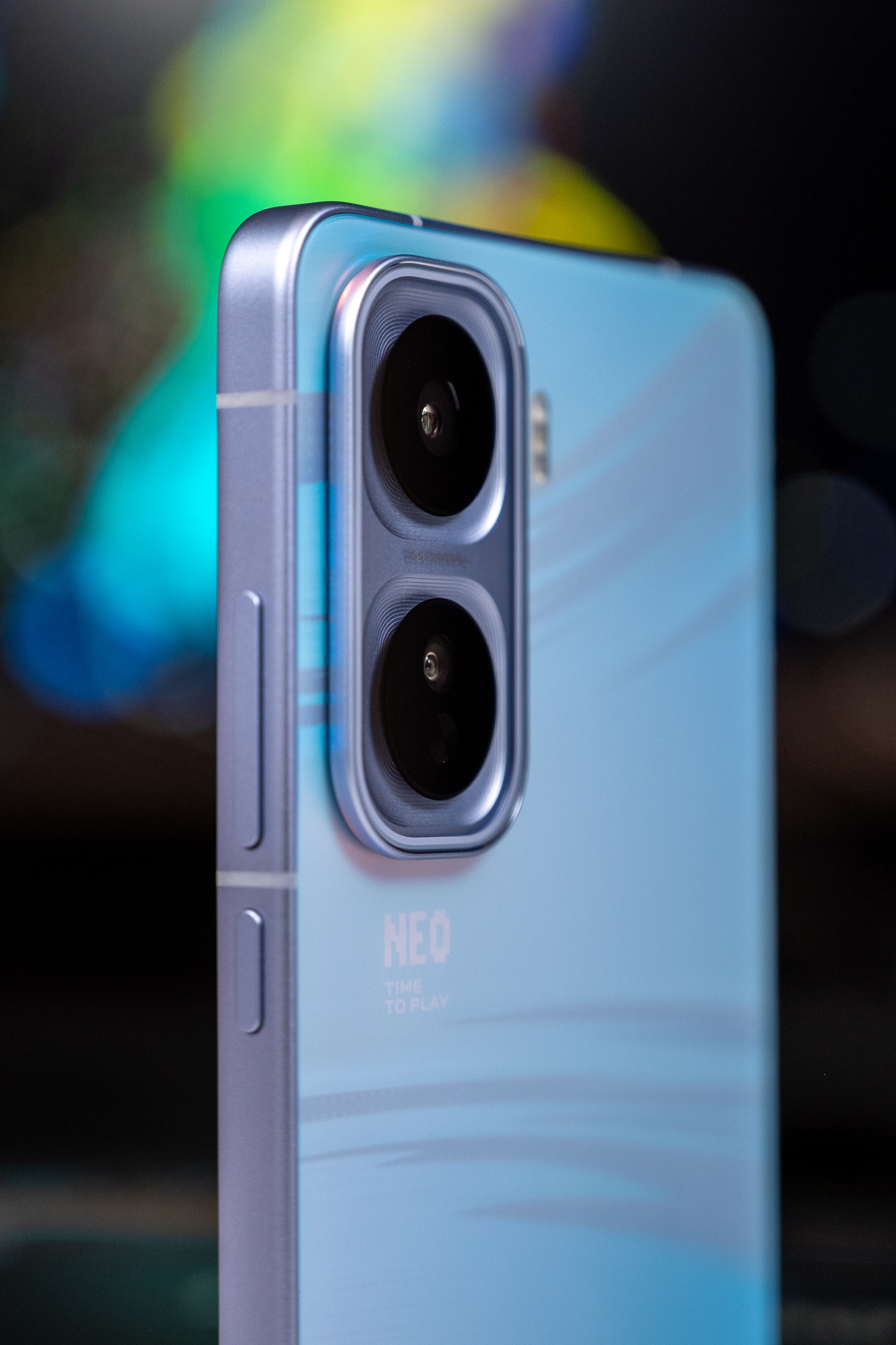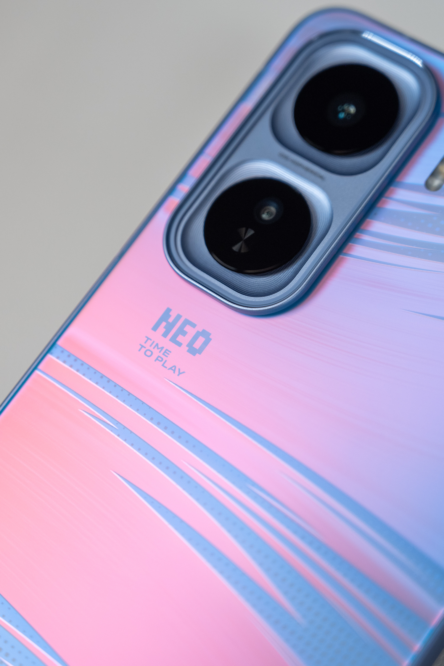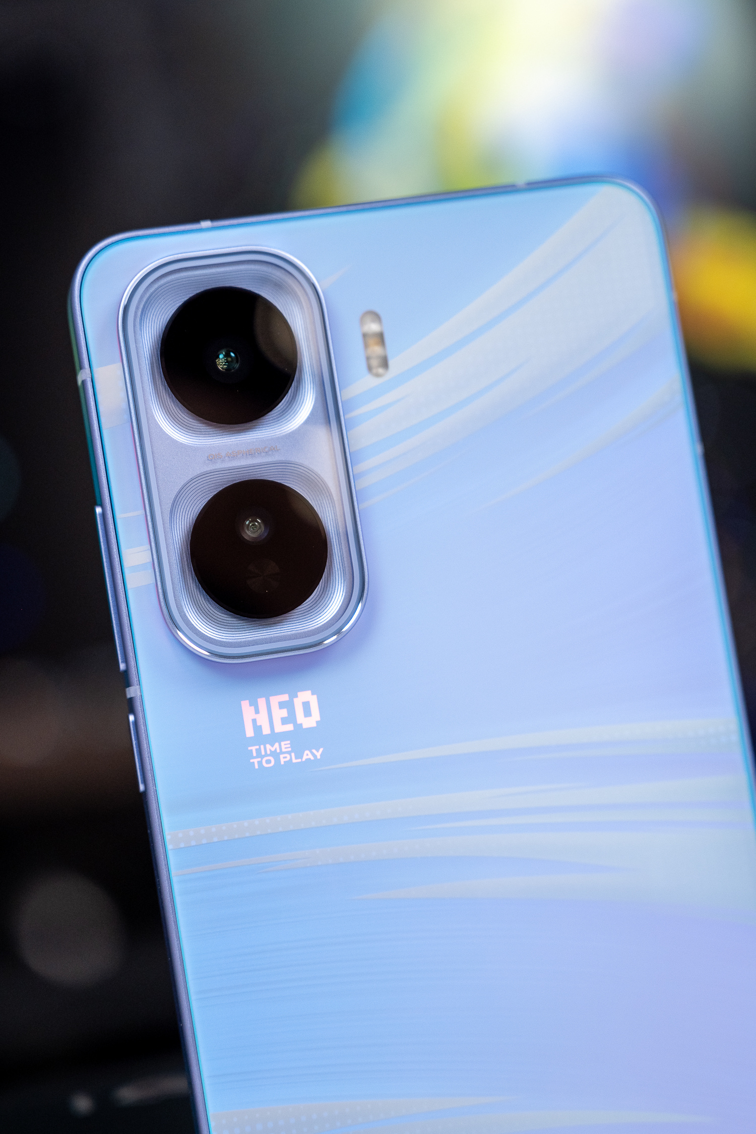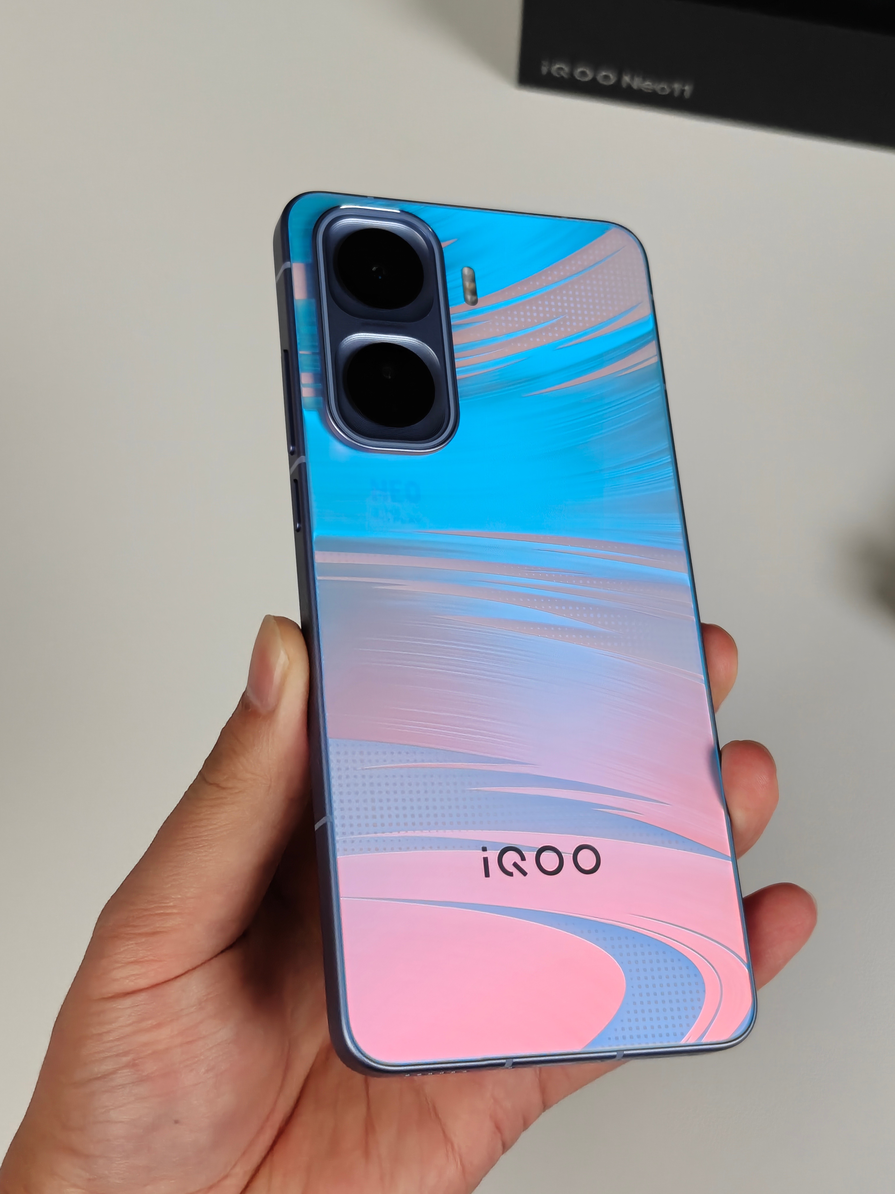 手机背板在不同光线和角度下能变幻成各种颜色,看着满炫酷的,后盖纹理中有旋风元素,搭配金属边框与标志性双摄,整机质感不错!