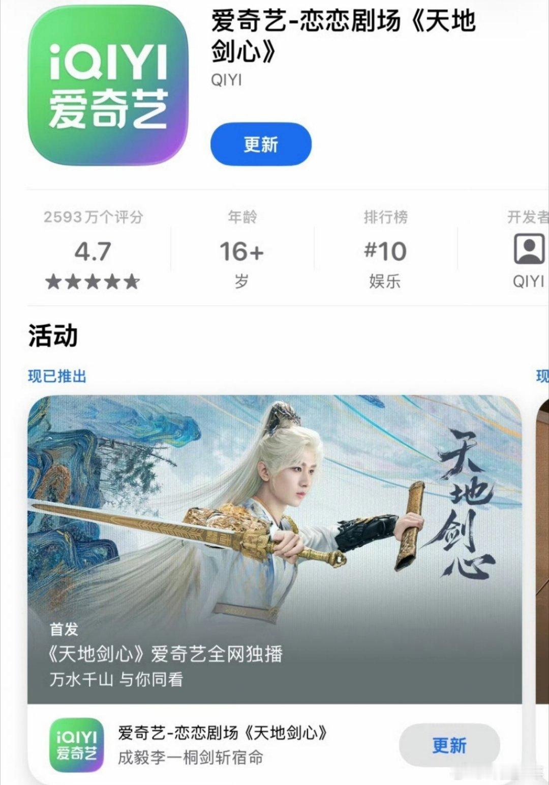 爱奇艺AppStore改成天地剑心页面 爱奇艺给《天地剑心》的排面太顶了!AppStore页面专属定制,再看抖音5.7亿+的话题播放量,这部剧从平台到观众都在力挺,想不火都难!