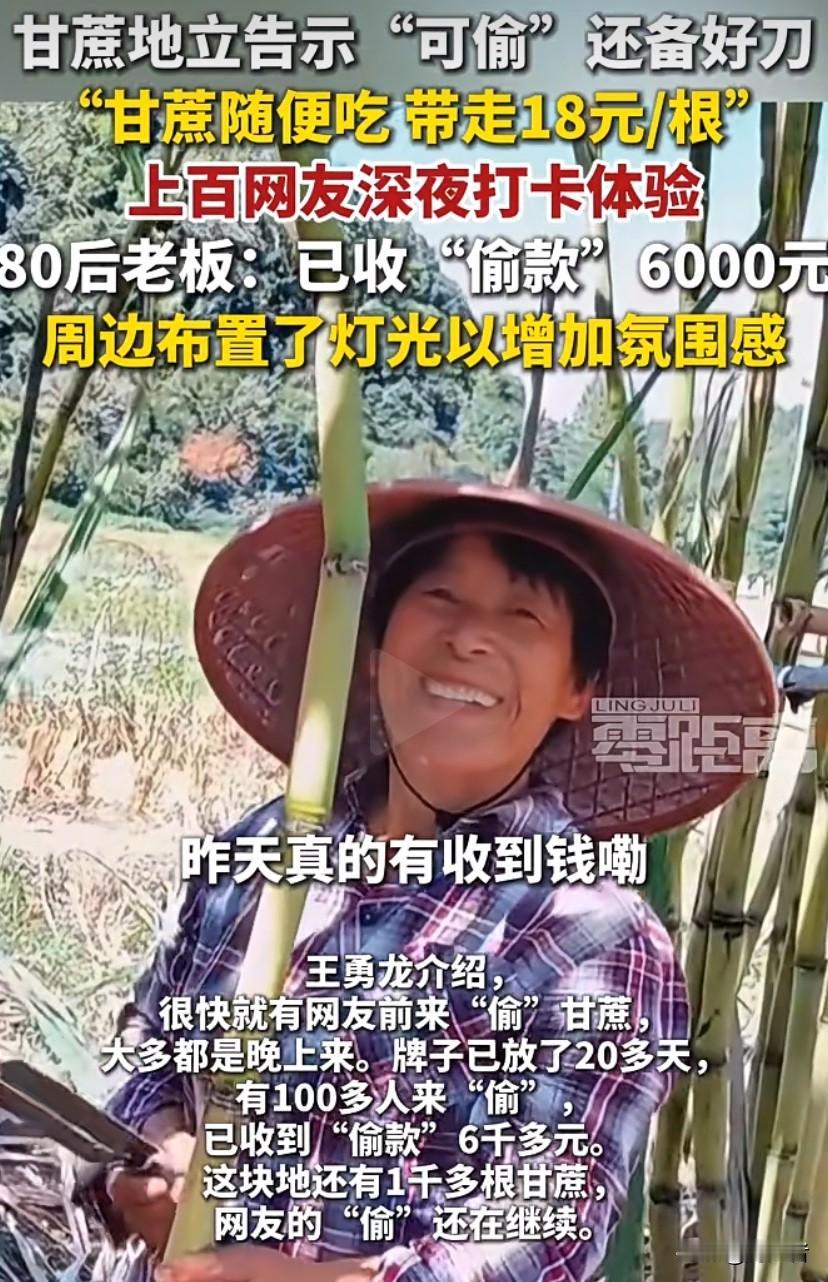 80 后老板人也怪好的,“自助‘偷’甘蔗,19 点到 5 点,18 元/根,甘蔗随便吃”的告示牌,还备好刀,想让人体验小时候偷甘蔗的乐趣。20 多天,王勇龙就收了超 6000 元“偷款”。其实甘蔗市场价 5 元一根,但大家愿意花 18 元,就为体验这种“适度越轨”的感觉。在这规则里,时间限定、自助模式、工具配套,让大家能释放天性,把压力抛一边,当回“坏孩子”,这生意真是妙啊!