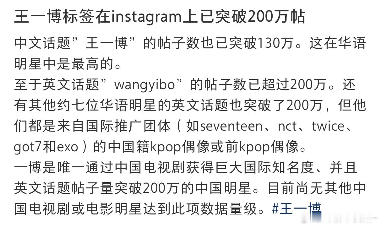 卧槽卧槽 王一博的词条在ins上突破了两百万欸!太牛了吧!!![点赞][点赞]