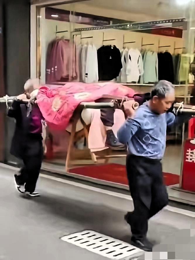 70岁兄弟抬94岁老娘看病!这一抬,才是最真的孝心! 谁看了这画面不戳心啊!72岁大哥抬后面,快70岁二弟抬前面,俩老人硬生生把94岁老娘抬去医院,看完病又抬回家,累得喘不上气才坐地上歇会,接着又起身走。 他们哪是没别的办法啊?说不定是想省救护车钱,也可能是怕麻烦儿女,可再难也没耽误给老娘看病。 这哪是抬着老人,分明是抬着为人子女的本分,比那些空口说“孝顺”的人实在多了。 现在总说孝心难寻,可这兄弟俩用行动证明,真正的孝从不是多有钱多风光,而是不管自己多大年纪,都拼尽全力护着父母。 这种孝心,根本不用特意教,自然会传给下一代。 你们觉得,比起物质孝顺,这种“拼尽全力”的陪伴是不是更让人动容?来评论区聊聊!