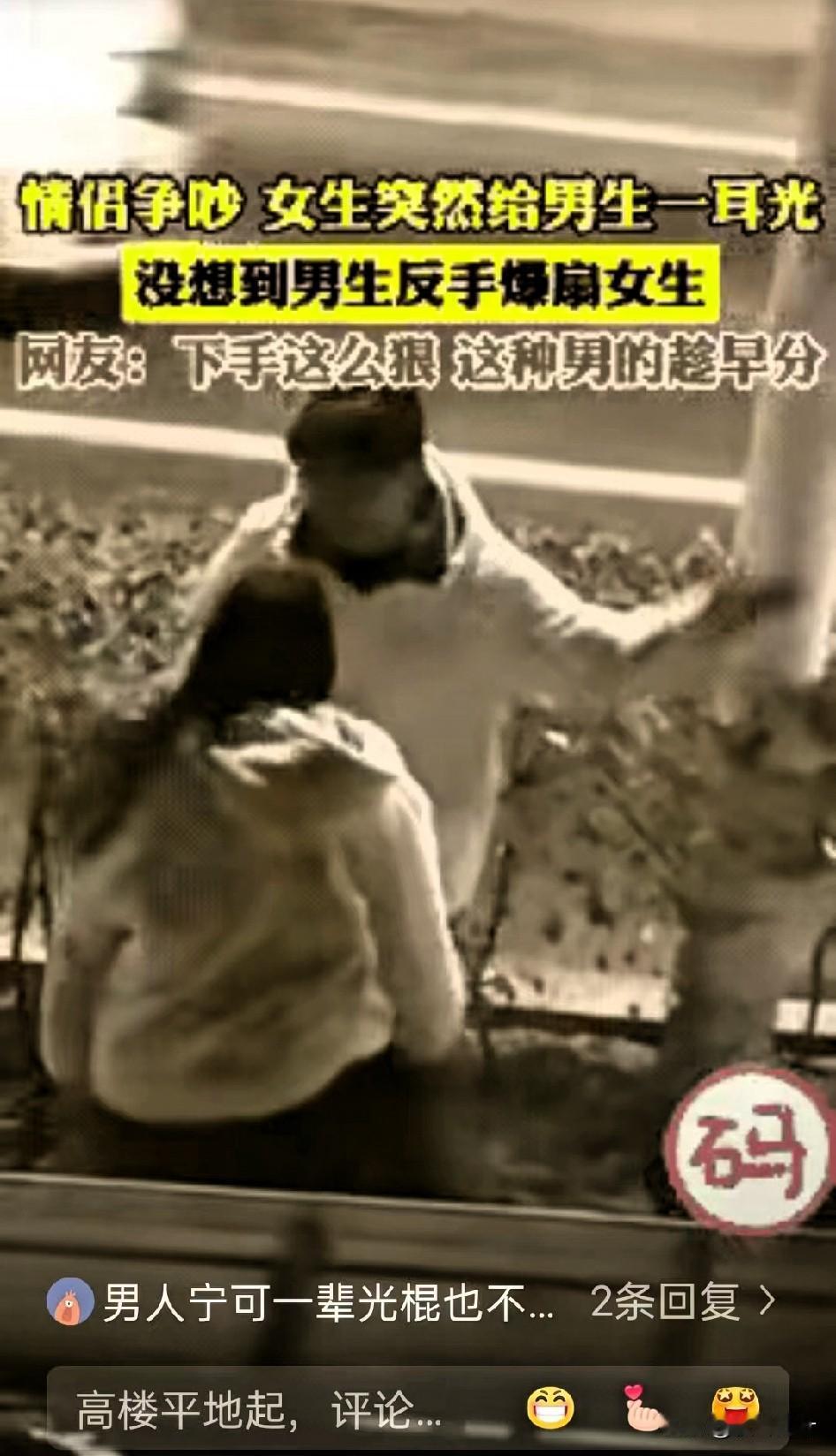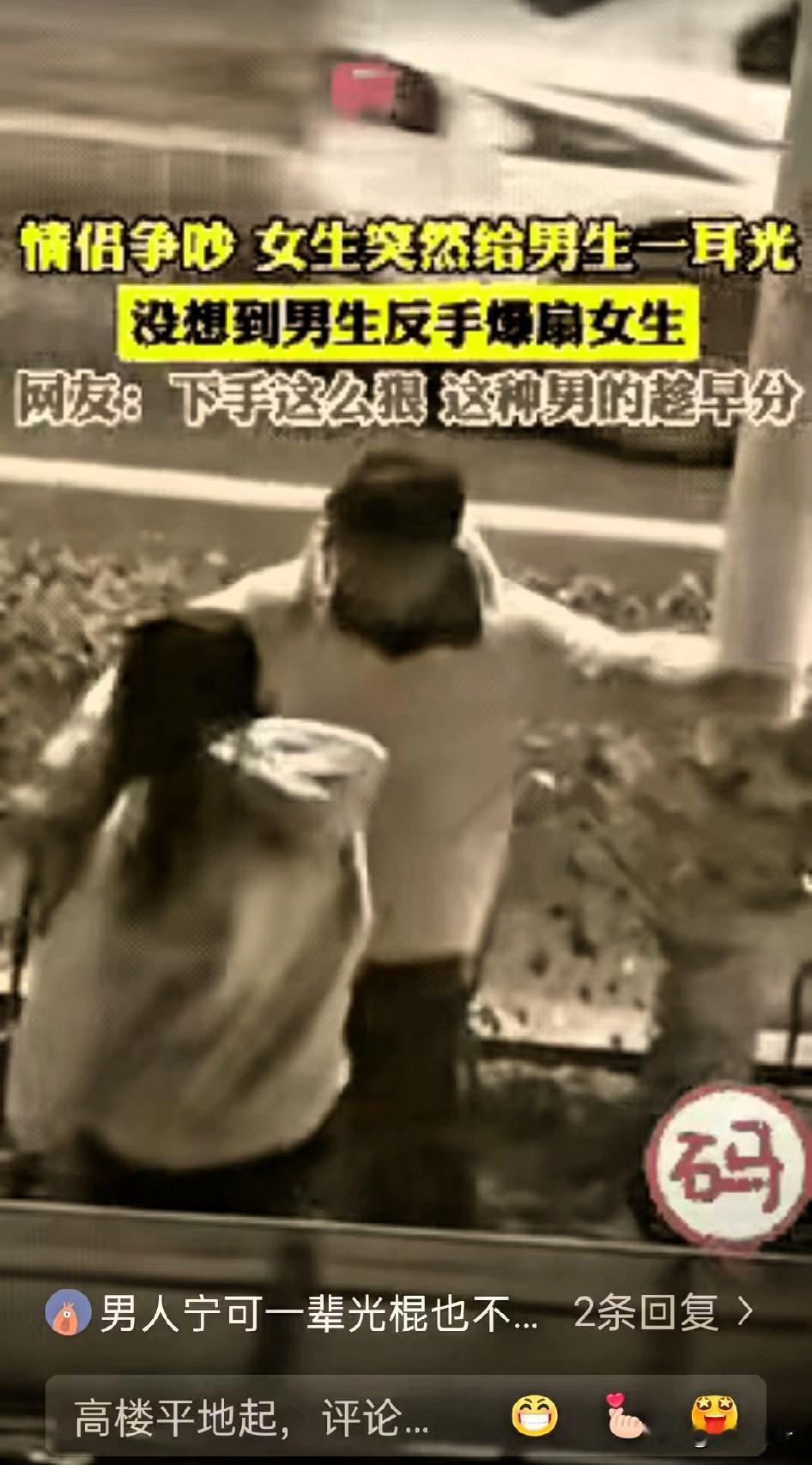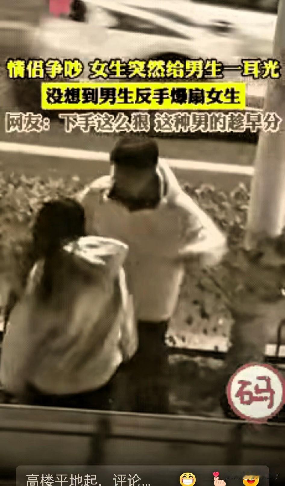 一对情侣在马路边发生了争执,在争执当中,女友动手打了来有一个耳光。 男生没半秒迟疑就回扇好几下——评论区直接吵翻,有人骂男生“家暴渣男,打女人算什么本事”,也有人帮腔“被打脸还不还手,没骨气活该受气”。 可咱真别把路走死了!那些被扇不还手的人,从不是怂,更不是愿意被欺负,是心里还装着过去的情分,不想让矛盾彻底炸锅,连最后一点体面都留不下。要是把这份退让当成“好拿捏”,那才是真的拎不清轻重。 还有人说“男人不能被打脸,不然就不配当男人”,这话听着就拧巴。真正的男人,尊严从不是靠拳头挣来的,是就算气到胸口发闷,也能攥紧拳头不往爱人身上落; 是清楚情侣间再吵再闹,“动手”都是碰不得的底线。主动打女人肯定错,但被打了就立马用同样的方式报复,不也活成了自己讨厌的样子? 老话讲清官难断家务事,可“真爱绝不会动手”这件事,没半点含糊。要是俩人闹到靠巴掌解决问题,早不是谁对谁错的事儿了,是这段关系里早就没了尊重。不爱了大可以好好说再见,好聚好散多体面,动手不仅掉价,最后还落得一身骂名。 你们要是遇上这种情况,觉得除了打回去和硬忍,还有啥更体面的处理办法?